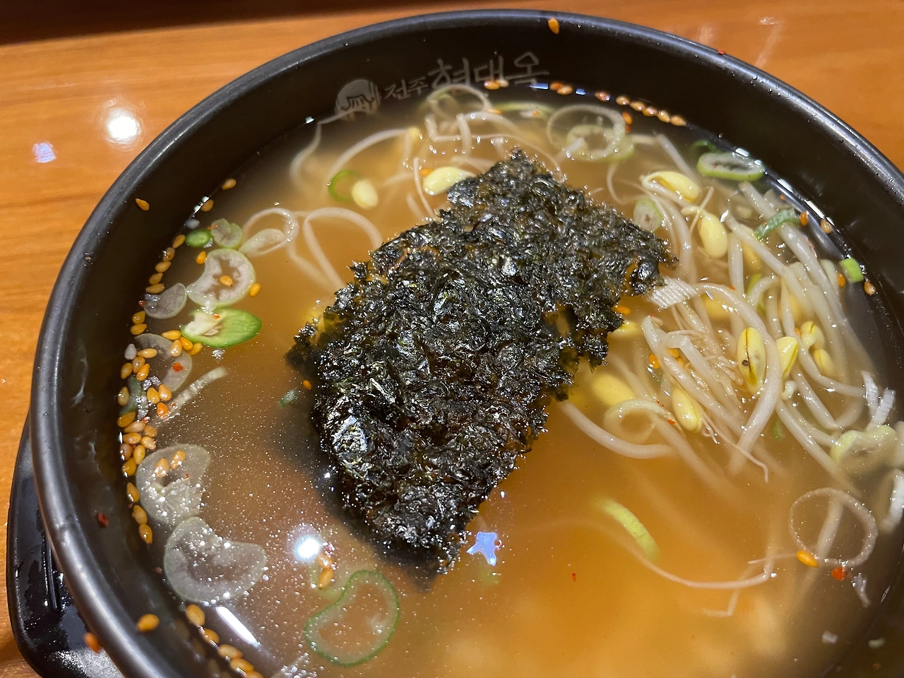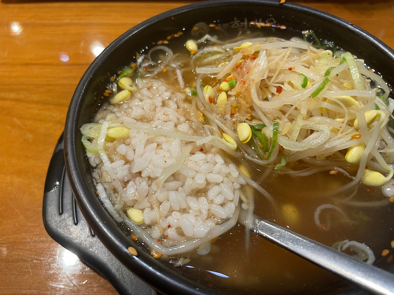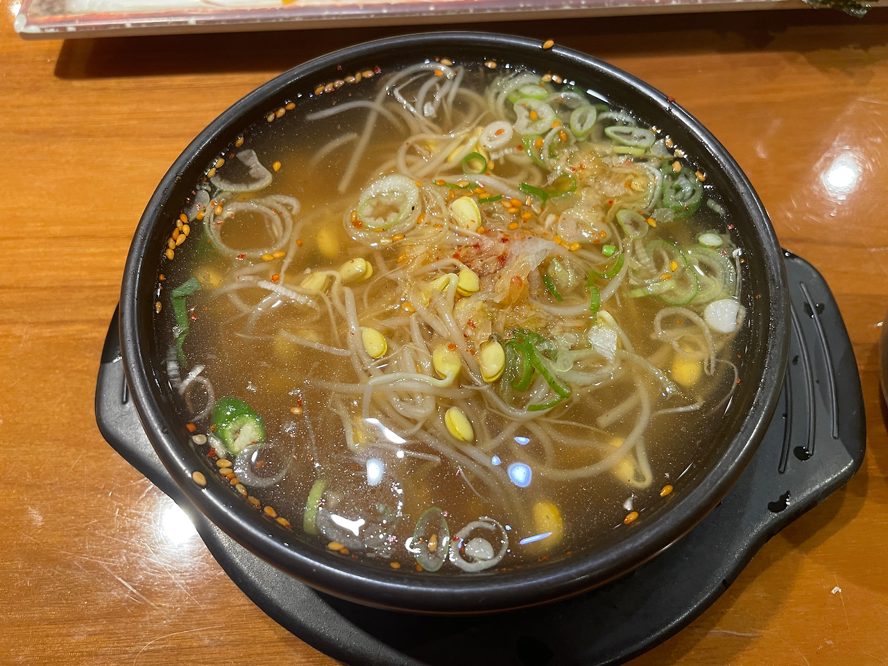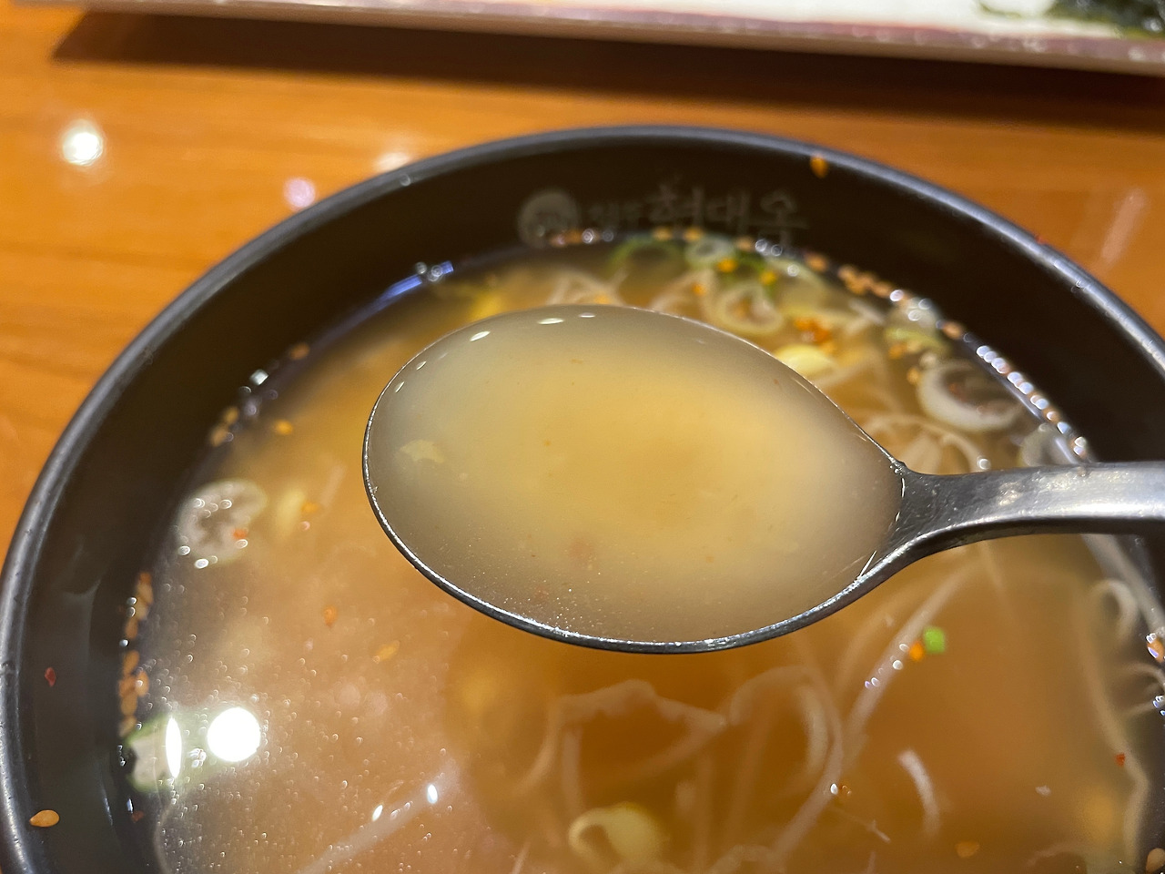 이 국물은 자극적이지 않고, 집에서 어머니가 끓여주신 콩나물국 같다.