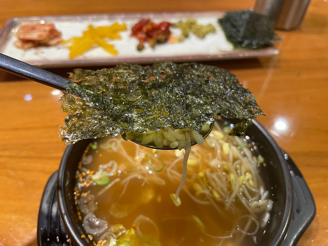 거기에 콩나물 해장국에 빠질 수 없는 김까지 마음껏 먹을 수 있다.