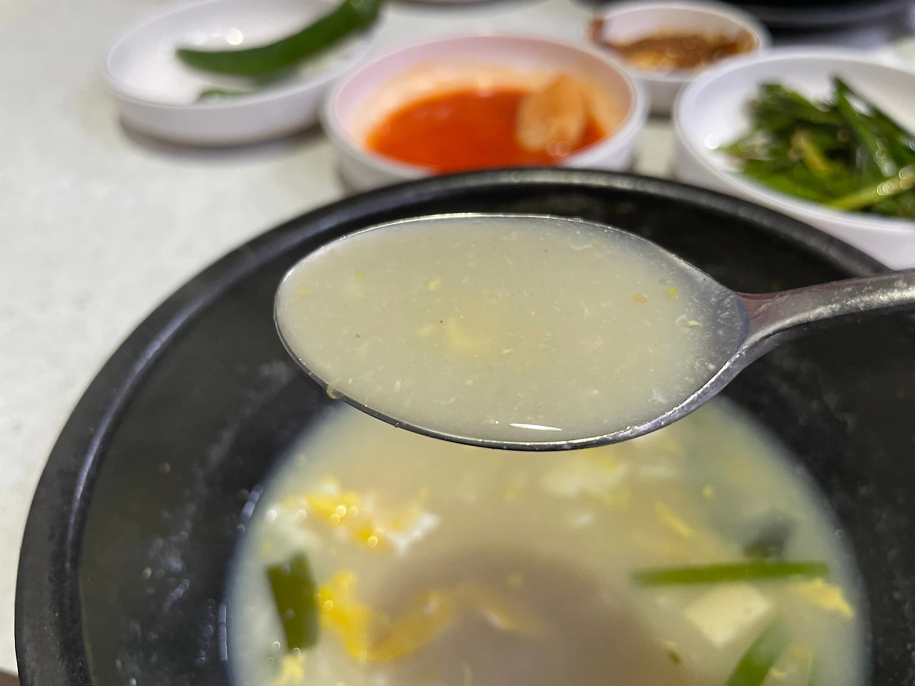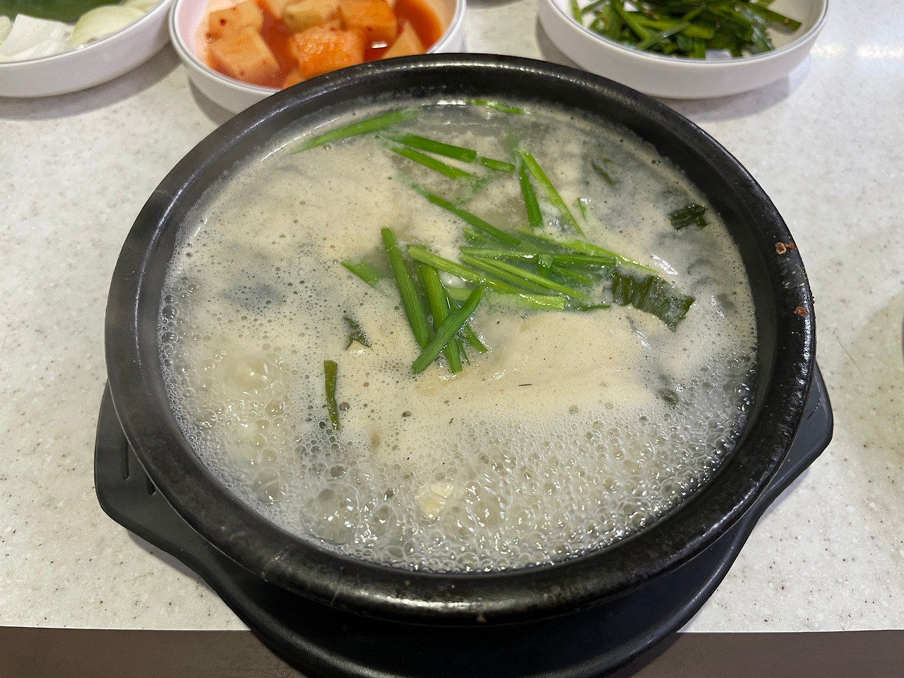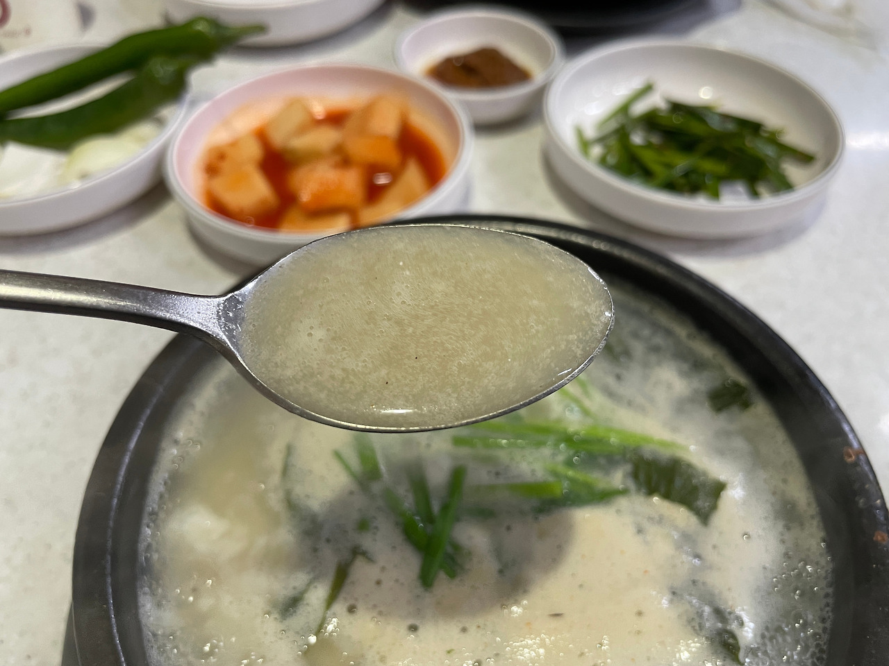 국물이 뽀얗고 진하다. 설렁탕 같네. 간이 잘 되어있어 짭짤한 감칠맛이 적당하다. 바다향이 진하다.
