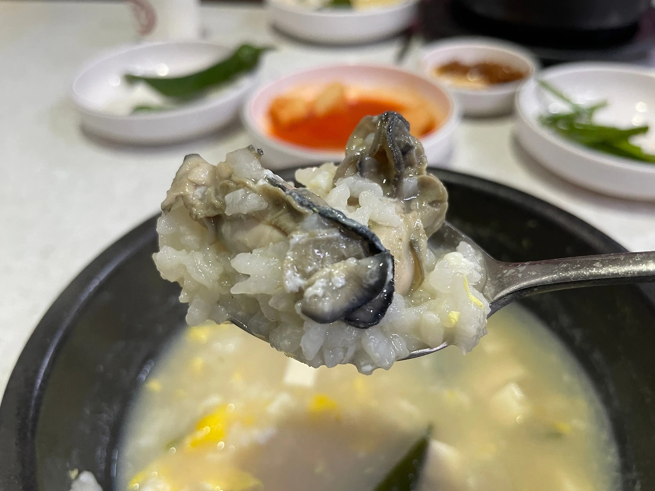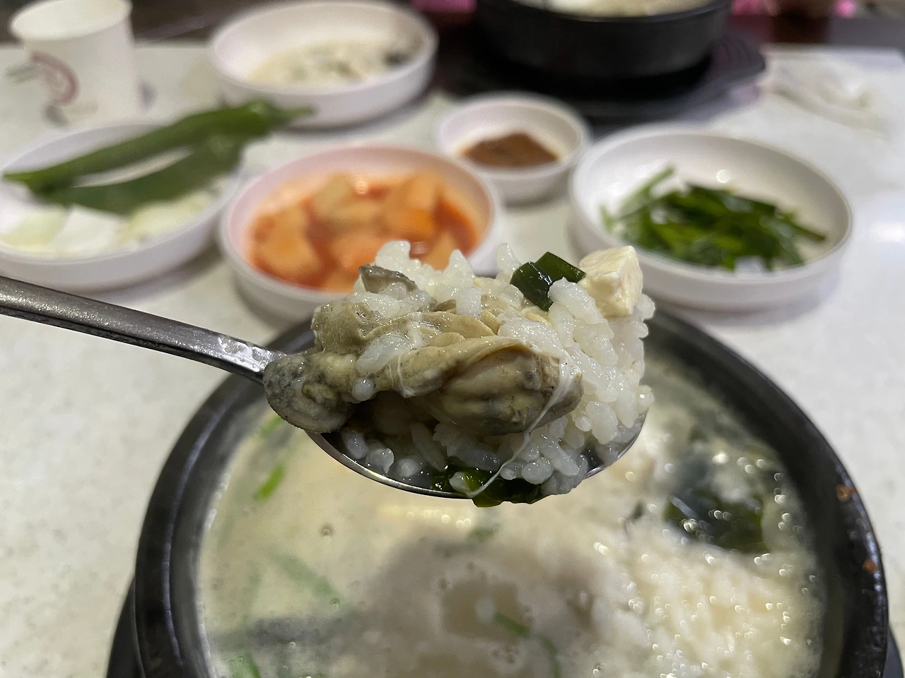 또 한 숟가락. 굴이 듬뿍 들어있다.