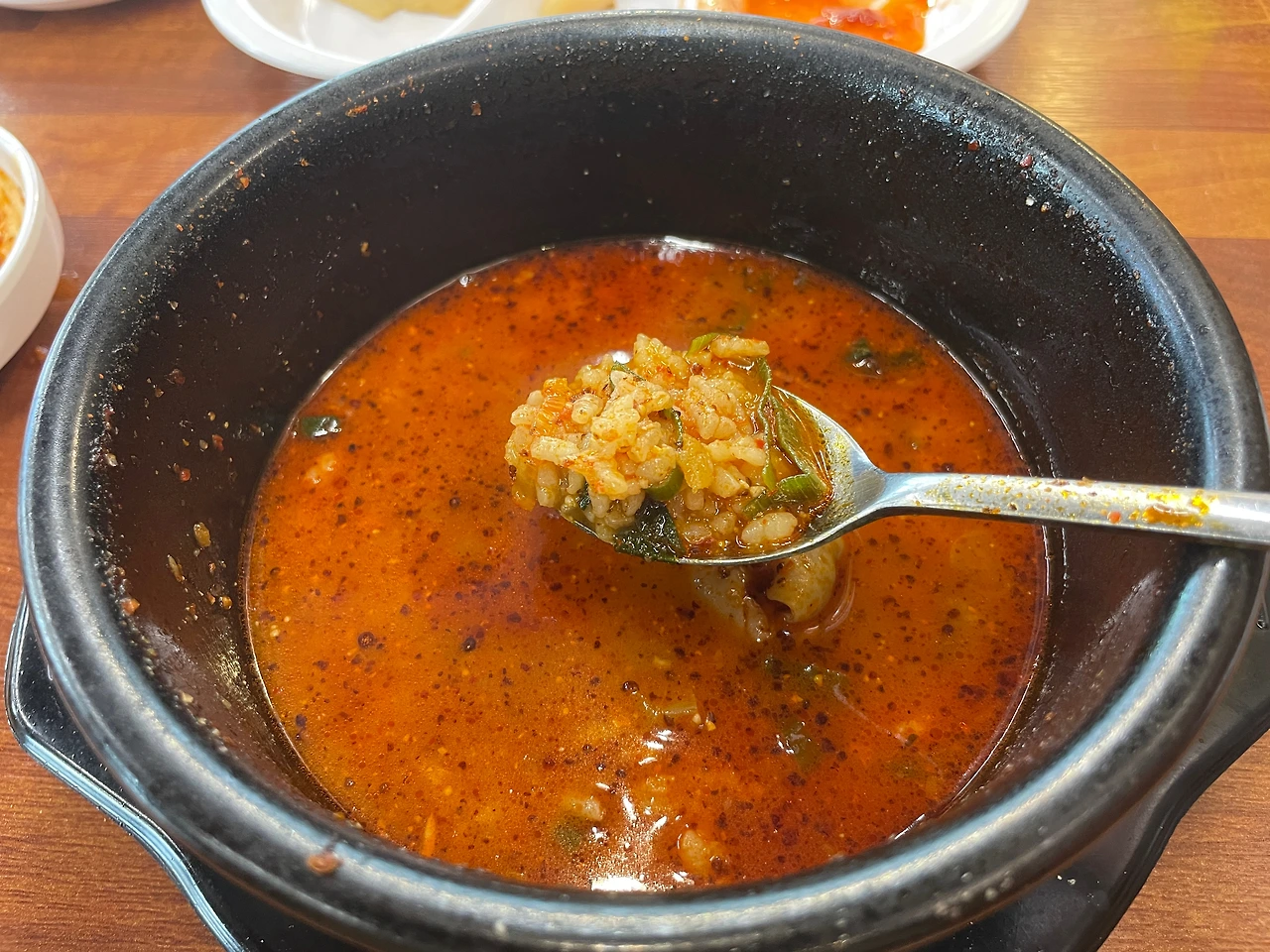 국물이 너무 맛있어서 참지 못하고 밥을 말았다.
