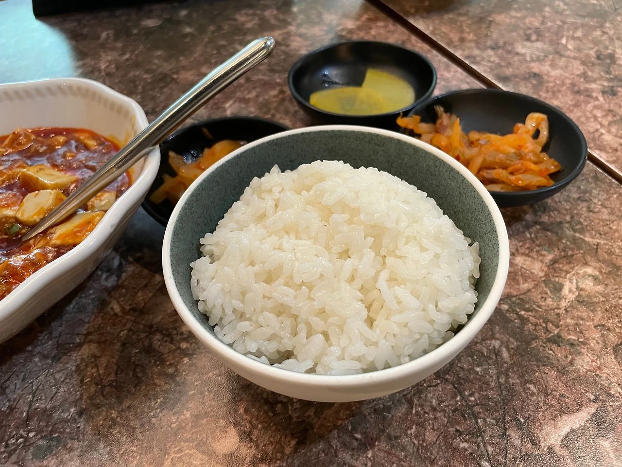 흰쌀밥에 마파두부를 얹어 비벼먹으면