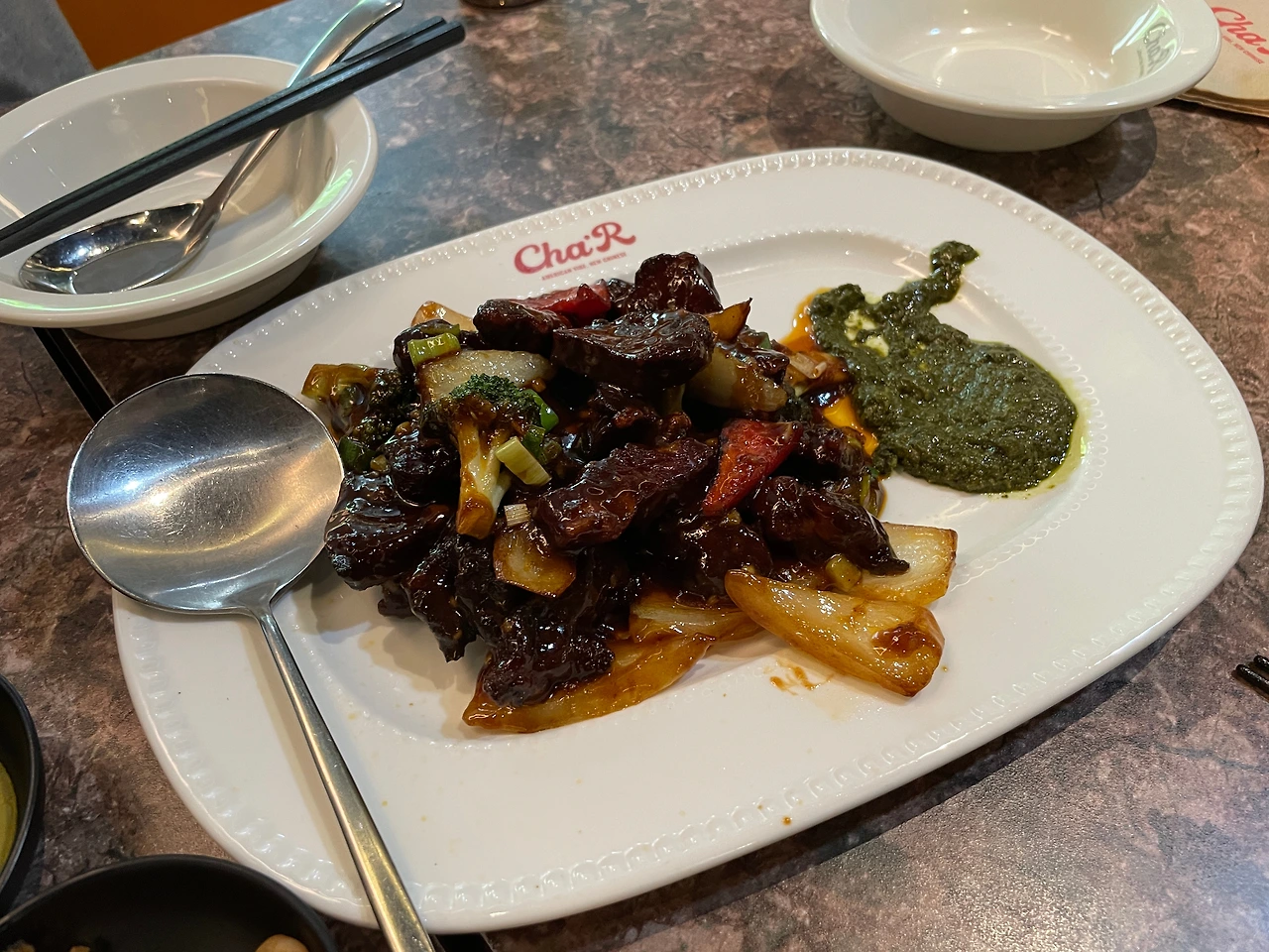 (새까맣게 탄 거 아닙니다. 양갱 아닙니다. 몽골리안 비프입니다.)