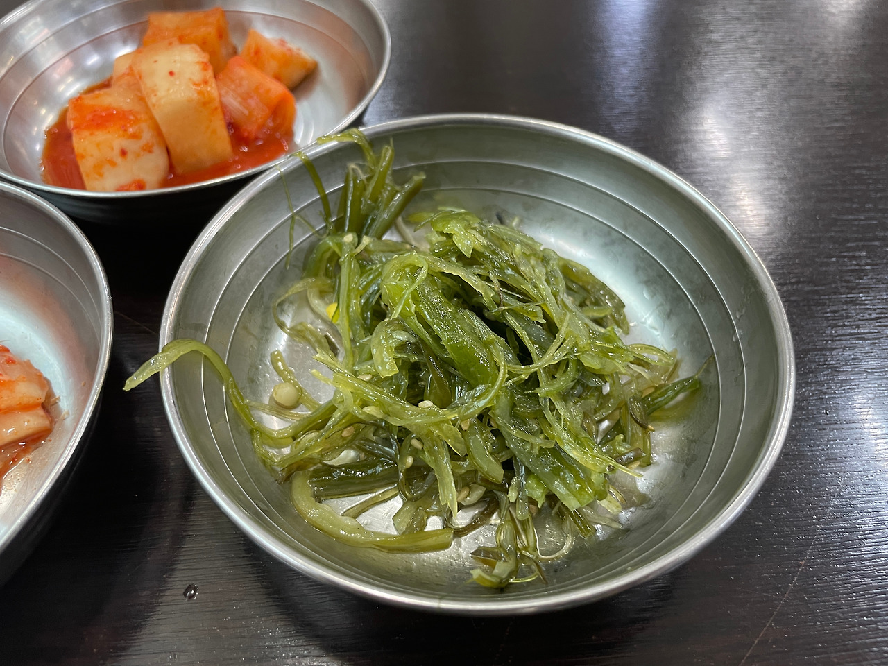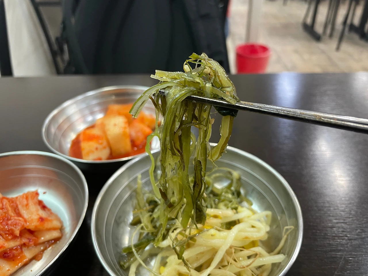 미역줄기볶음이 생뚱맞다 싶었는데, 의외로 매콤한 국물과 잘 어울린다.