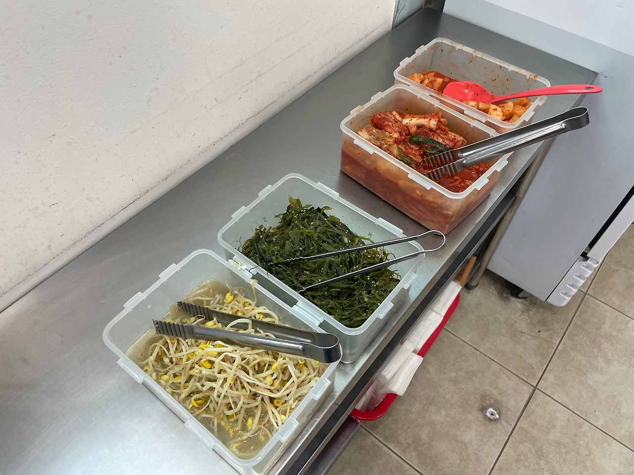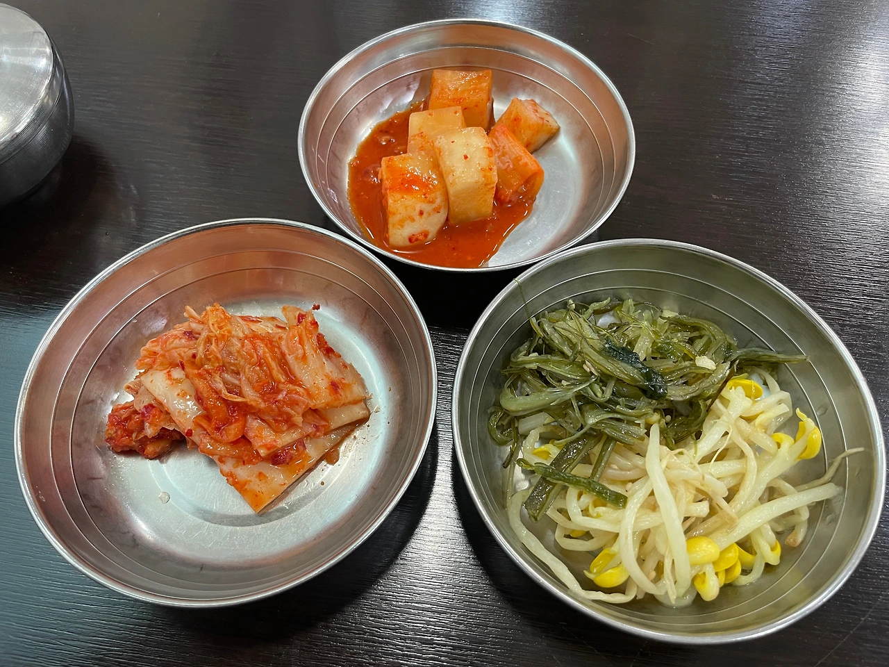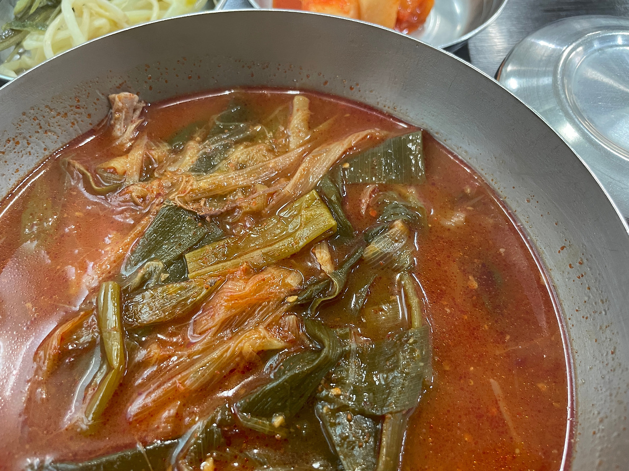 육개장 국물이 생각보다 매워서 김치에는 손이 잘 안 간다. 자꾸 미역줄기볶음만 먹는다. 리필이 필요하다. 여기서 셀프로 가져다 먹으면 된다.