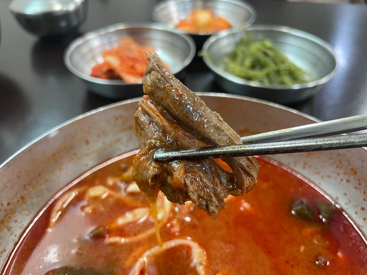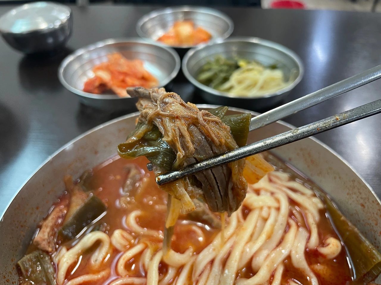 육개장과 칼국수의 조합이 생소할 수도 있겠지만, 나름 음식 쪽에서 매니아가 많은 메뉴다. 다루는 집이 적은 만큼 잘하는 가게를 찾기가 힘들다. 칼국수 면의 전분기가 육개장의 국물과 잘 조화를 이루는 곳을 좋아한다.