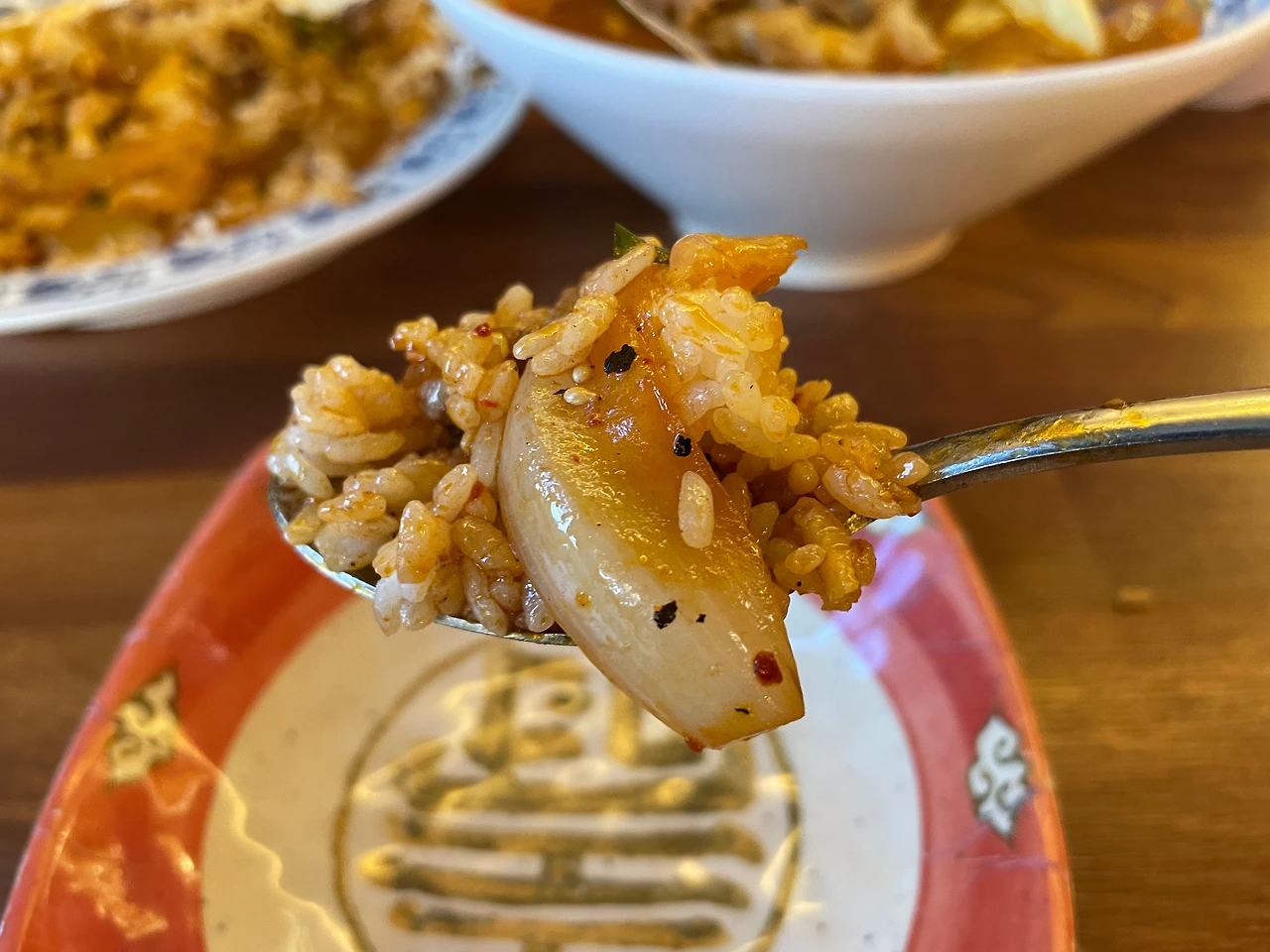 불향이 진하다. 새우, 오징어, 돼지고기를 양파, 양배추 등과 함께 매콤하게 볶아낸 모양새다.
