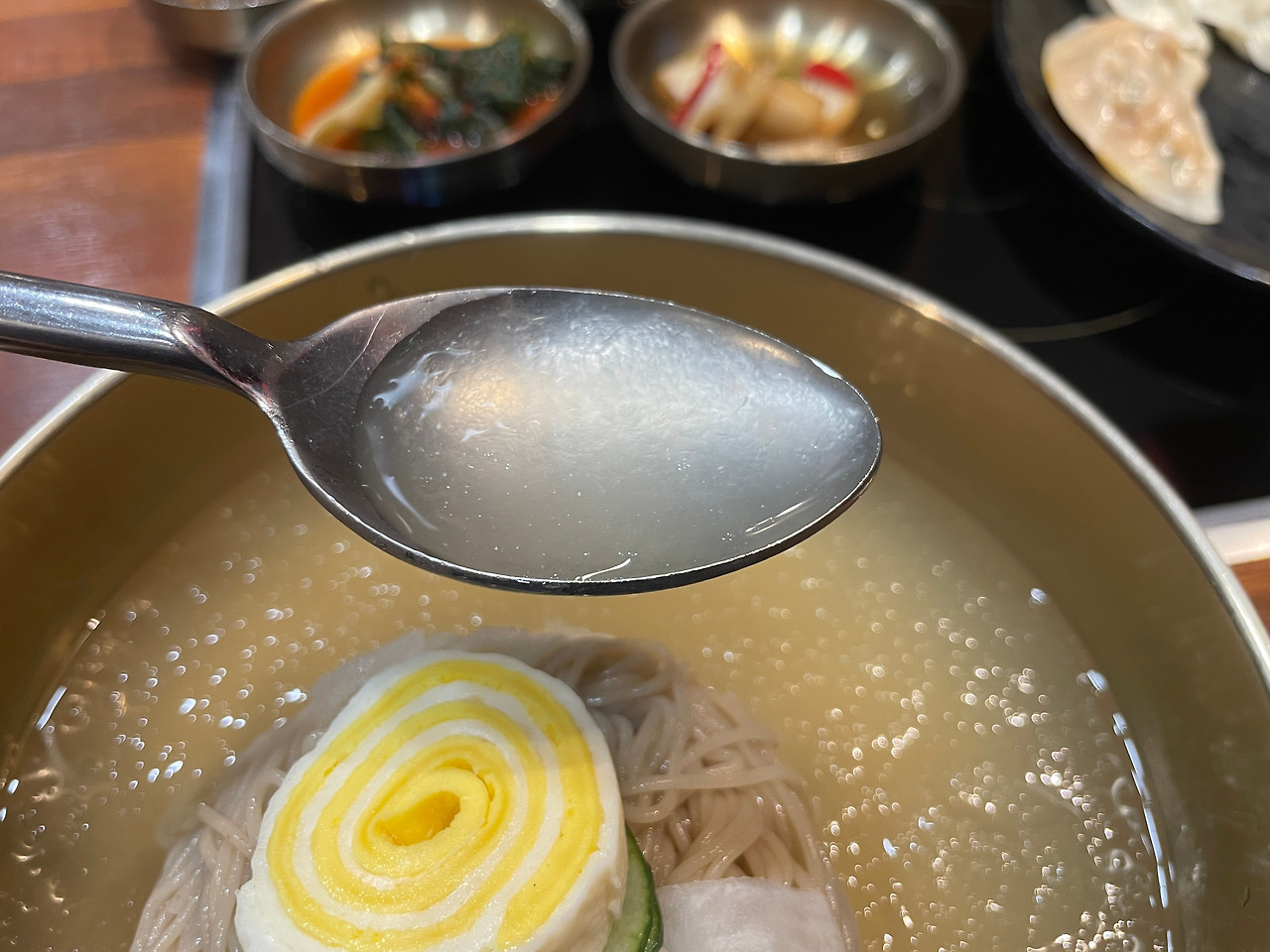 일반적인 냉면처럼 시큼하고 자극적이지 않다.