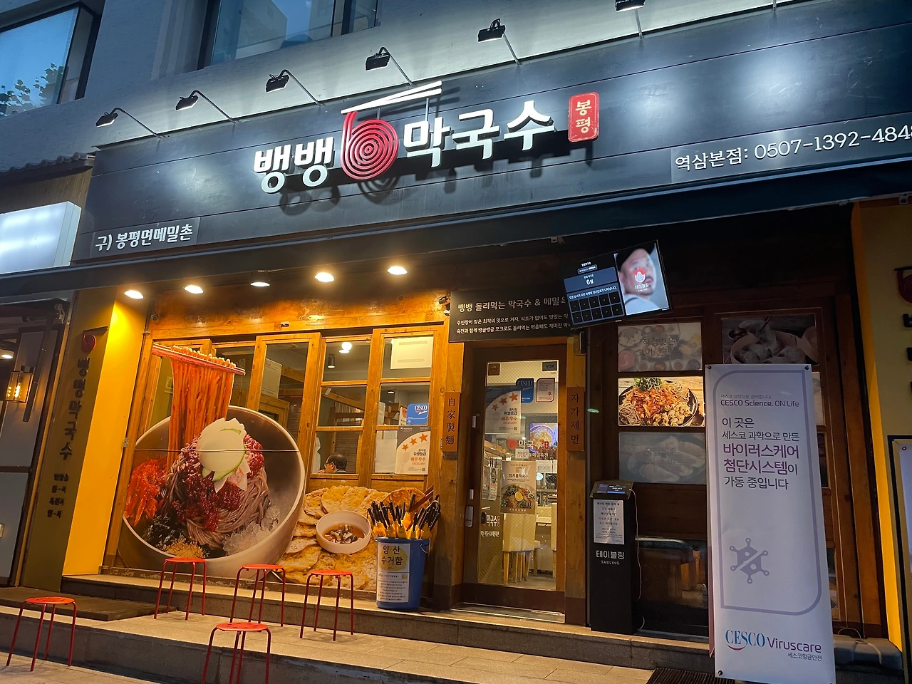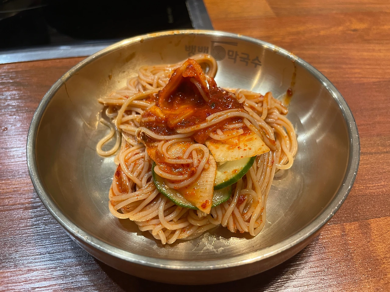 뱅글뱅글 돌려 먹어서 '뱅뱅 막국수' 라던데, 상호의 기원이 신기하다.