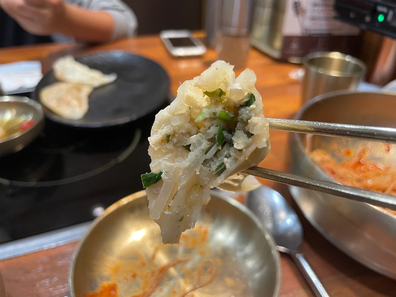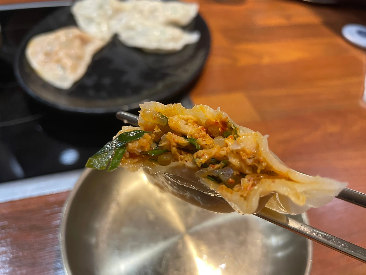 김치만두는 뭔가 얇다. 그렇다고 납작만두는 아닌 것 같고.