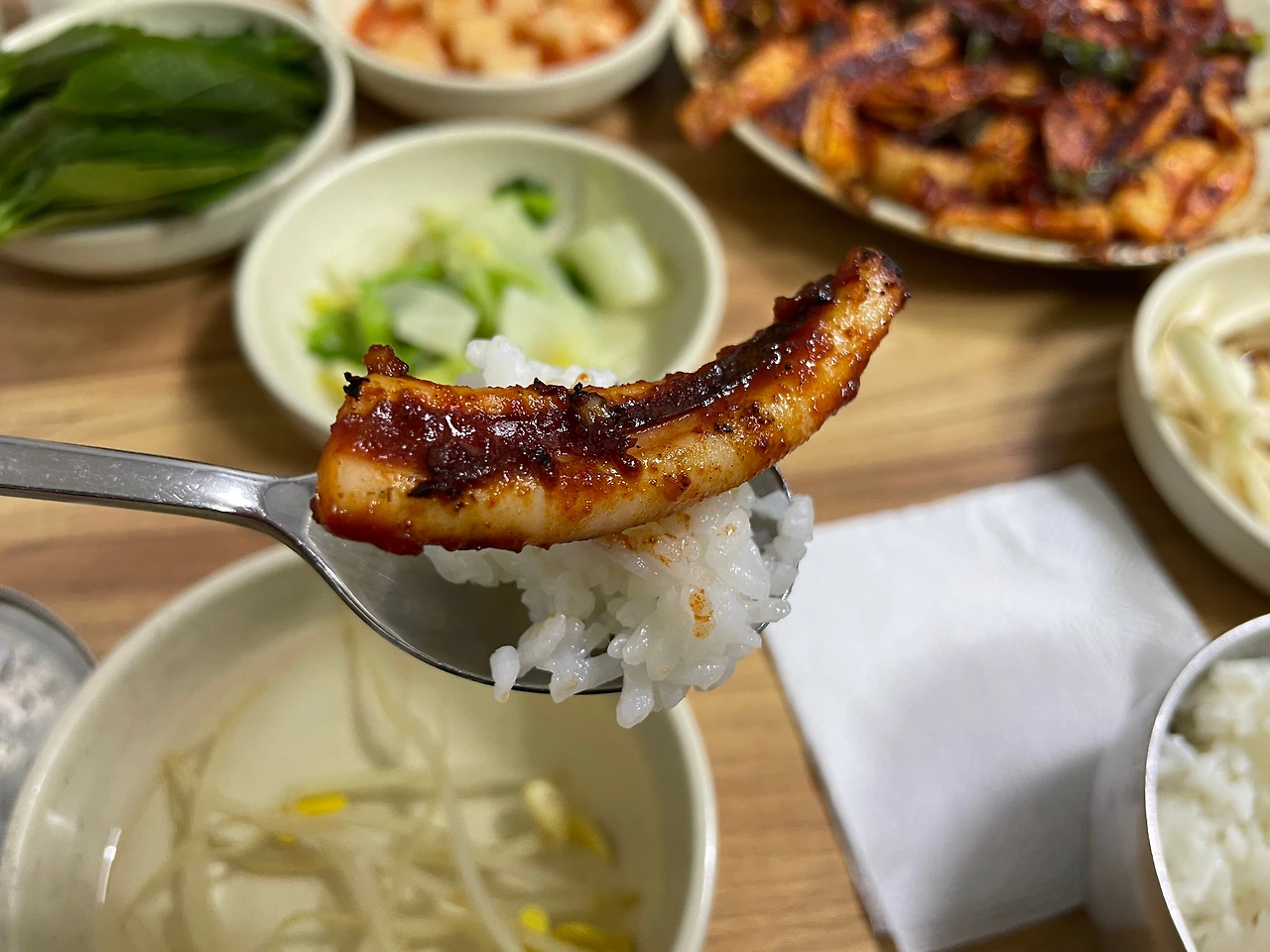 어떻게 구운 거지. 연탄구이 그런 건가 싶다. 불향이 이렇게 깊게 느껴질 수가.
