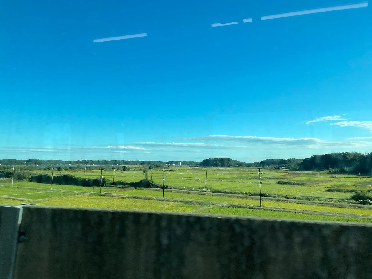 도쿄로 가는 창밖에 넓은 들판이 펼쳐진다.