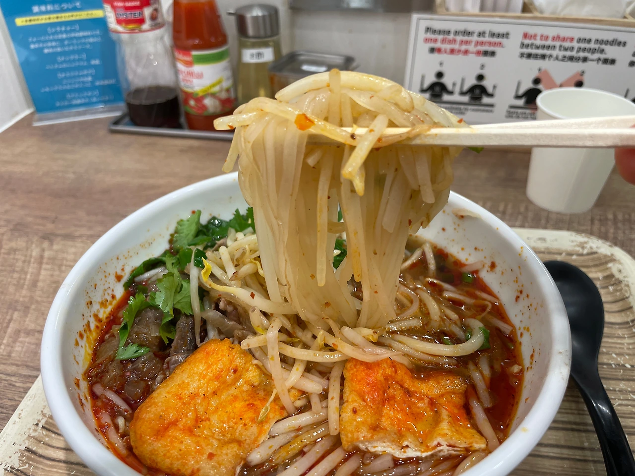 시켜서 한 입 먹어보니, 쌀국수 면이네.