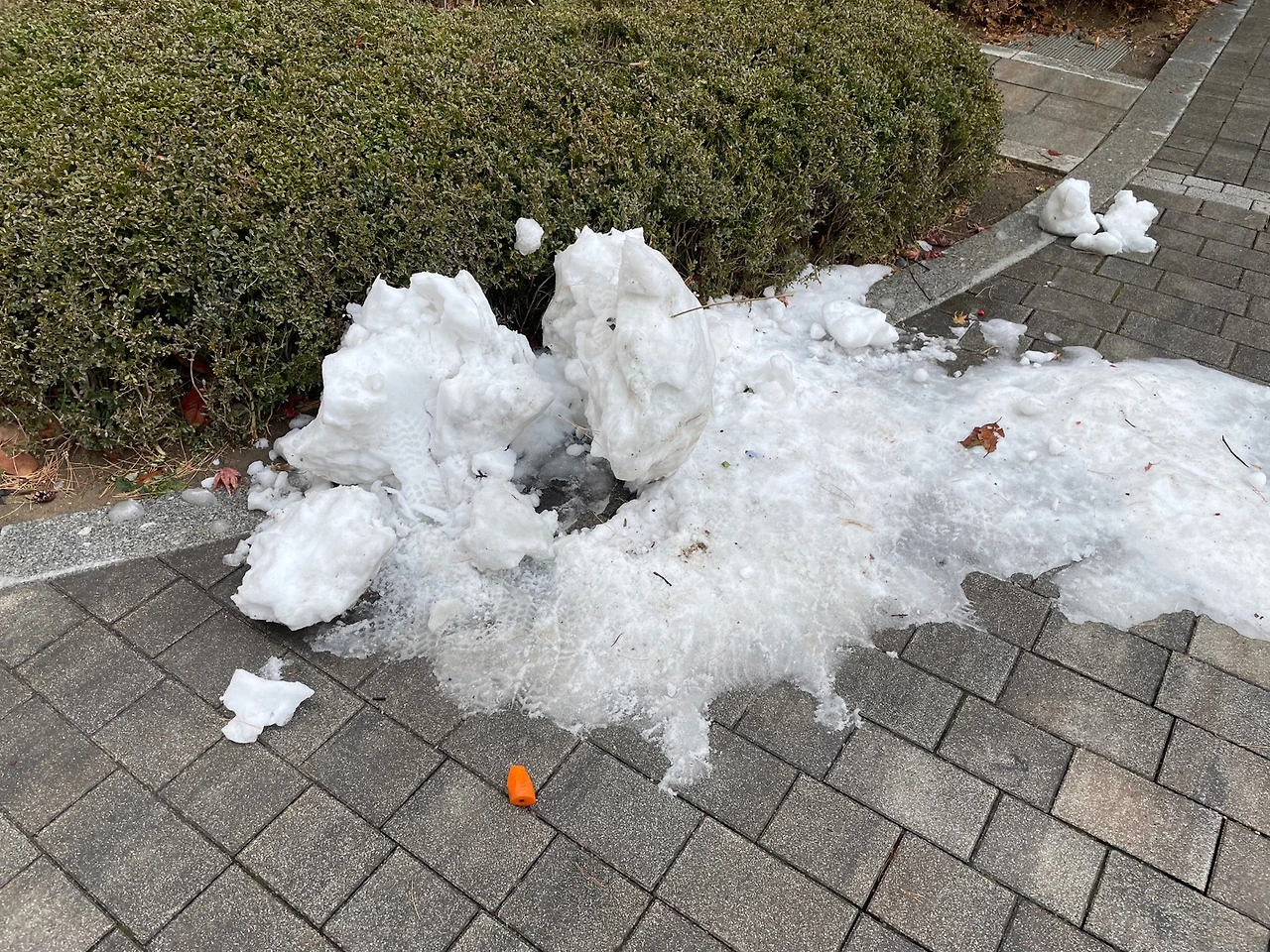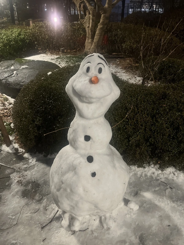 눈사람은 우리 동 바로 앞에 있어서, 오며 가며 매일 만났다. 아침에 출근하던 나는 어느새 그 친구에게 마음속으로 인사도 하고 있었다. '다녀올게~'라고.