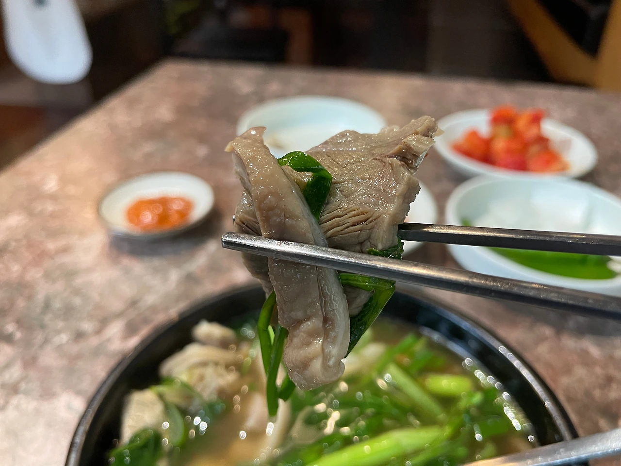 한 입 먹어보니, 오오 기가 막히다. 깔끔하고 적당히 기름진 짭조름하고 뜨끈한 국물. 순댓국 특유의 텁텁함은 전혀 없다. 순간 하동관에 온 줄 알았다.