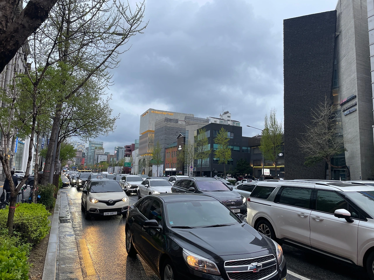다리 건너 압구정에 들어오니, 역시나 교통체증이 심하다. 여긴 차를 몰고 올 곳은 아니다.