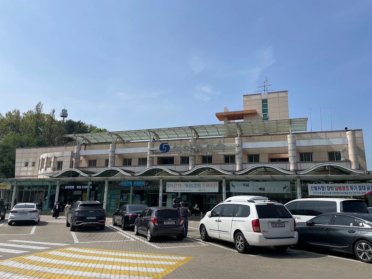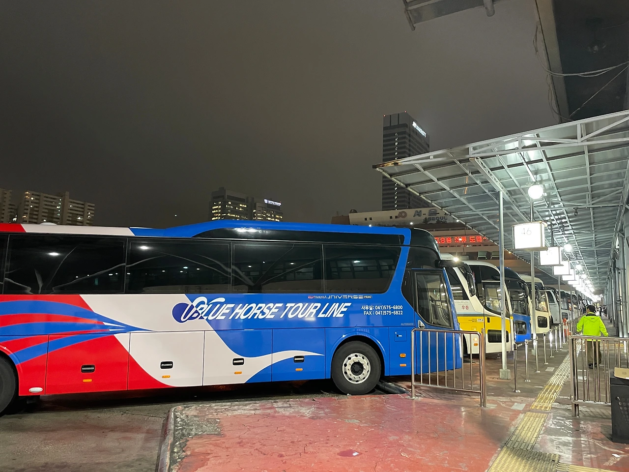 사선으로 잘 정돈된 버스들이 죽 늘어섰다.