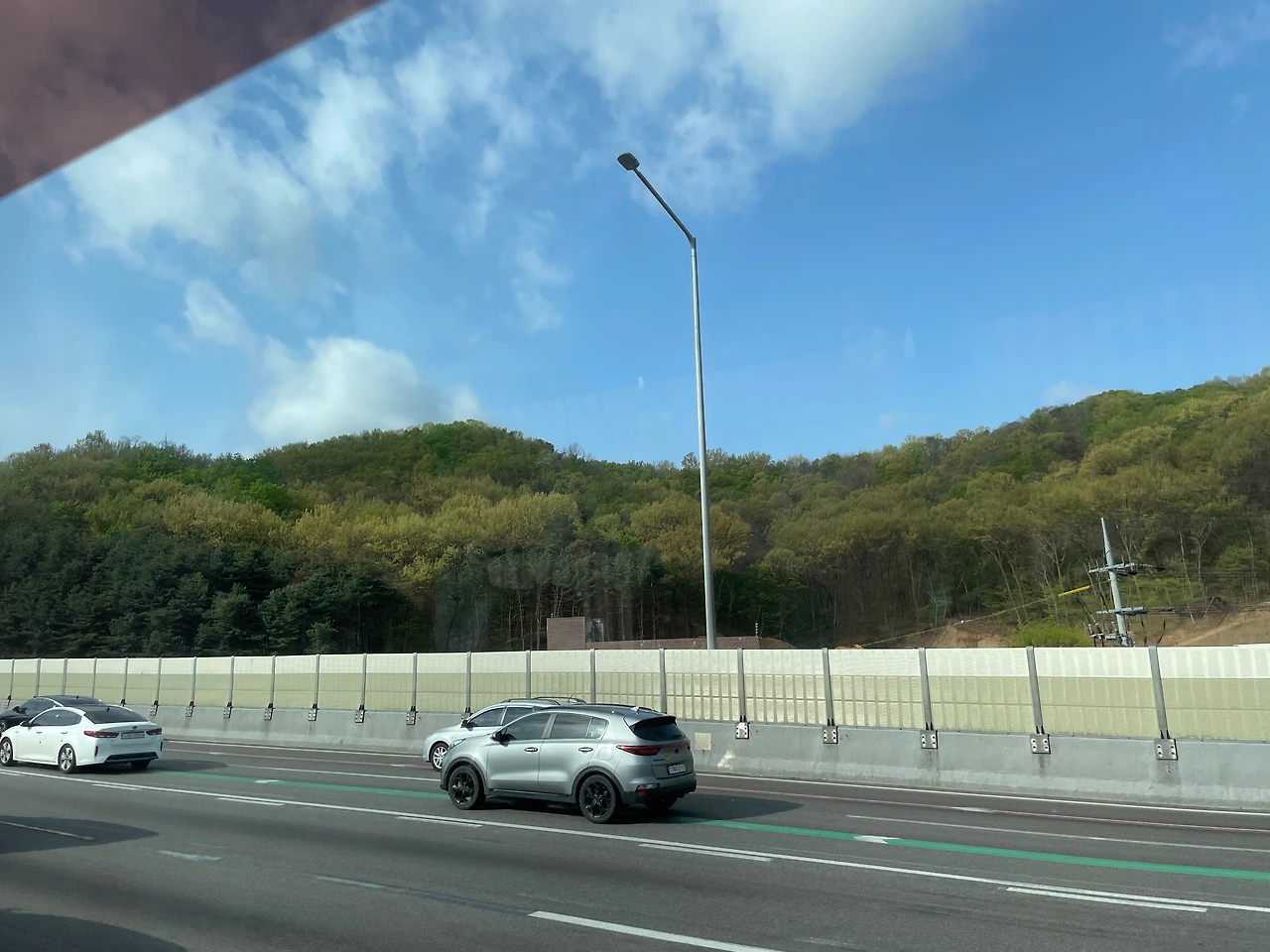 서울은 흐렸는데, 좀 내려오니 날씨가 좋다.