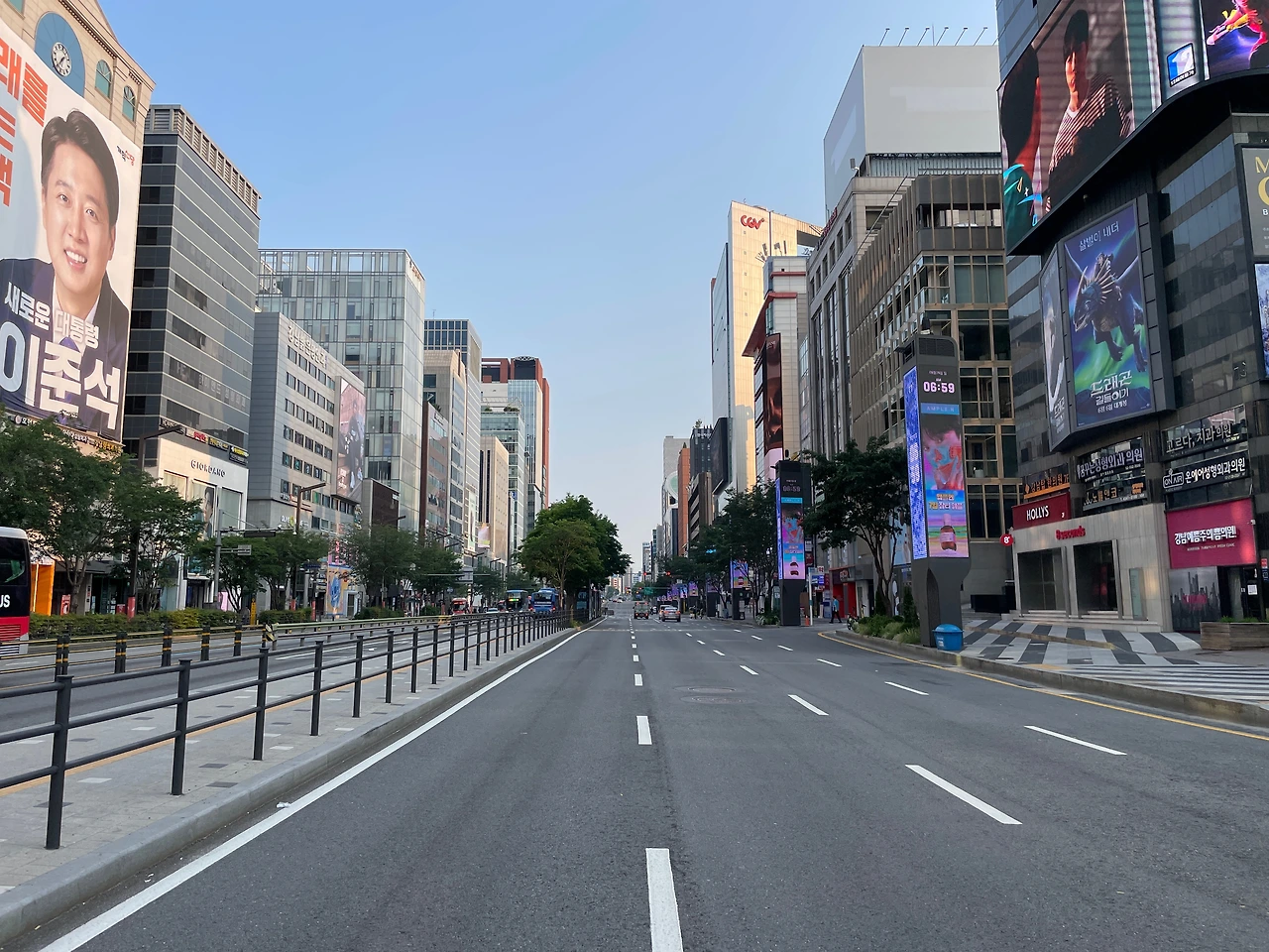 이른 시간, 인적 드문 강남역대로는 영화 ‘나는 전설이다’를 떠오르게 한다. 그 많던 사람들은 다 어디로 갔을까.