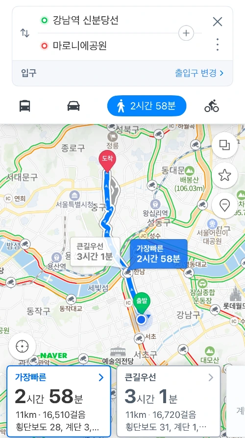 오늘은 강남역에서 마로니에 공원까지 걸어보자.