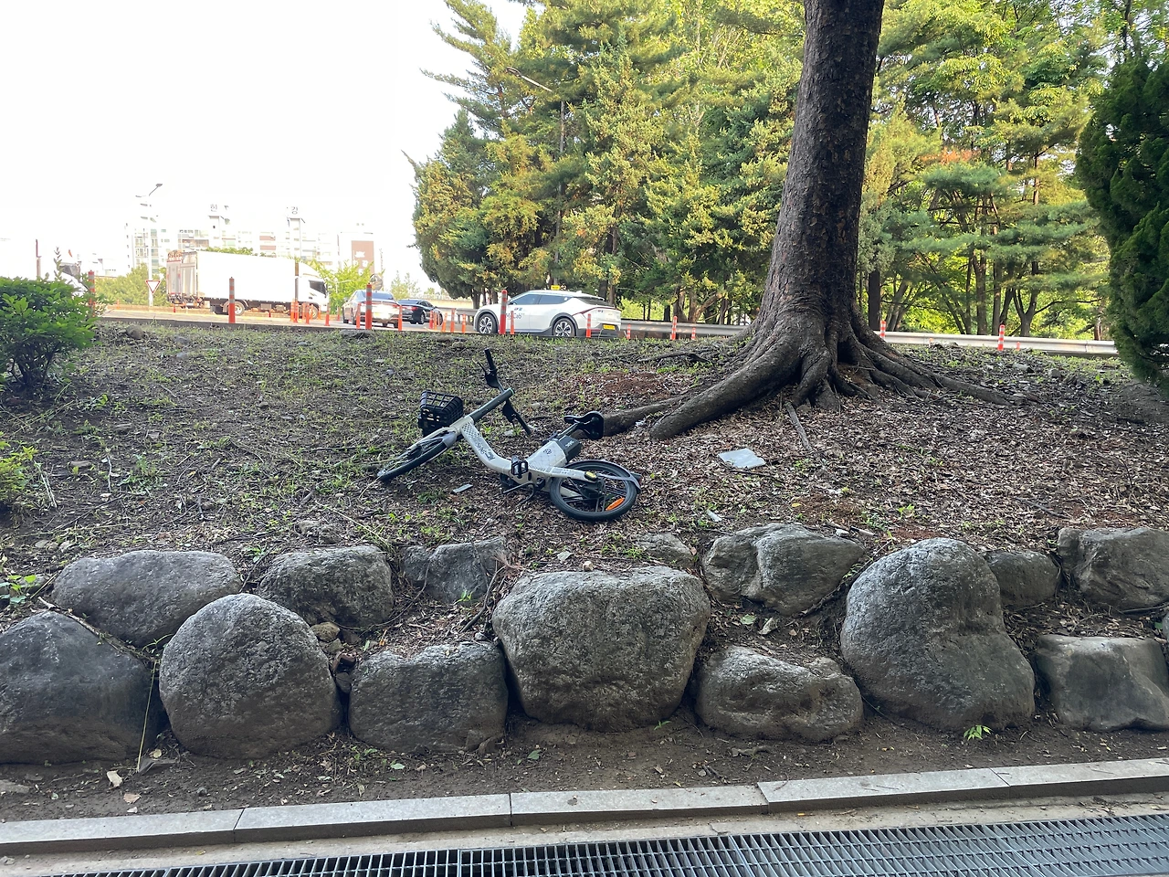 전기자전거를 저기 던져놓은 사람은 대체 어떤 생각을 했을까. 생각이란 걸 할 수는 있을까.