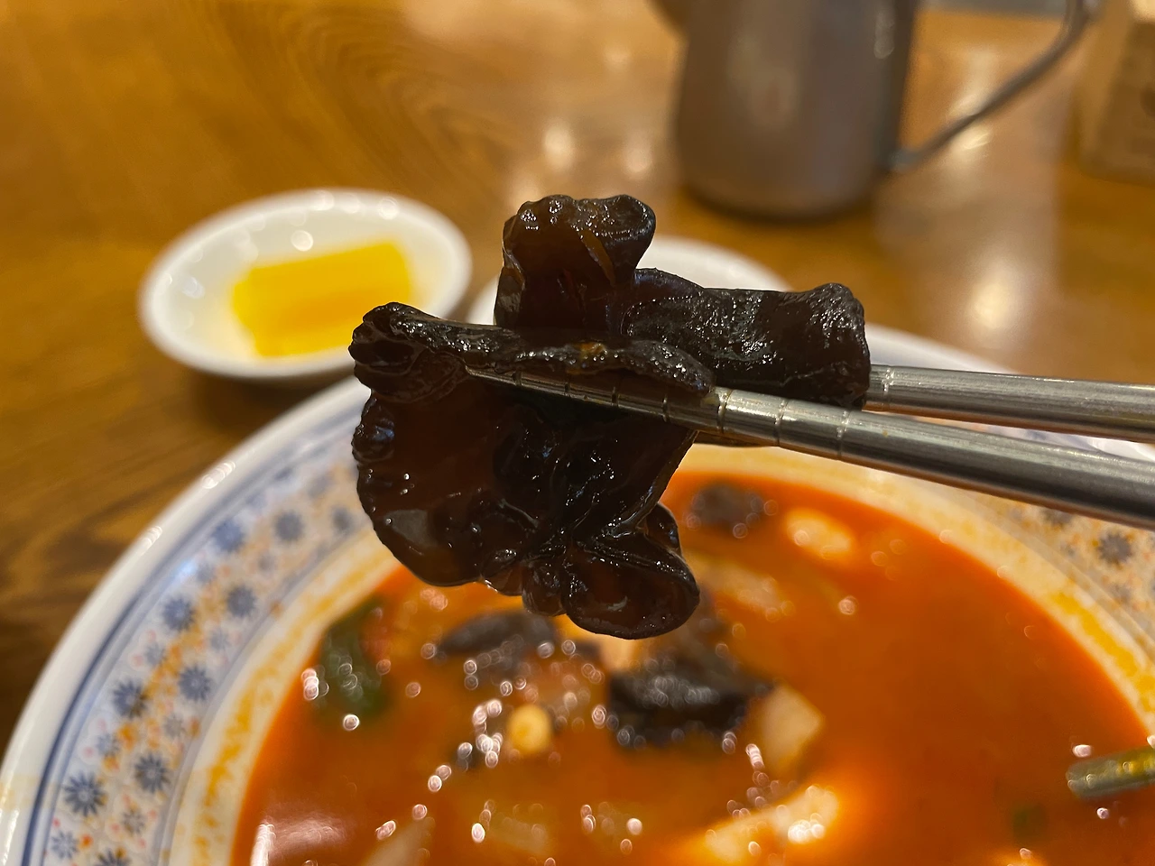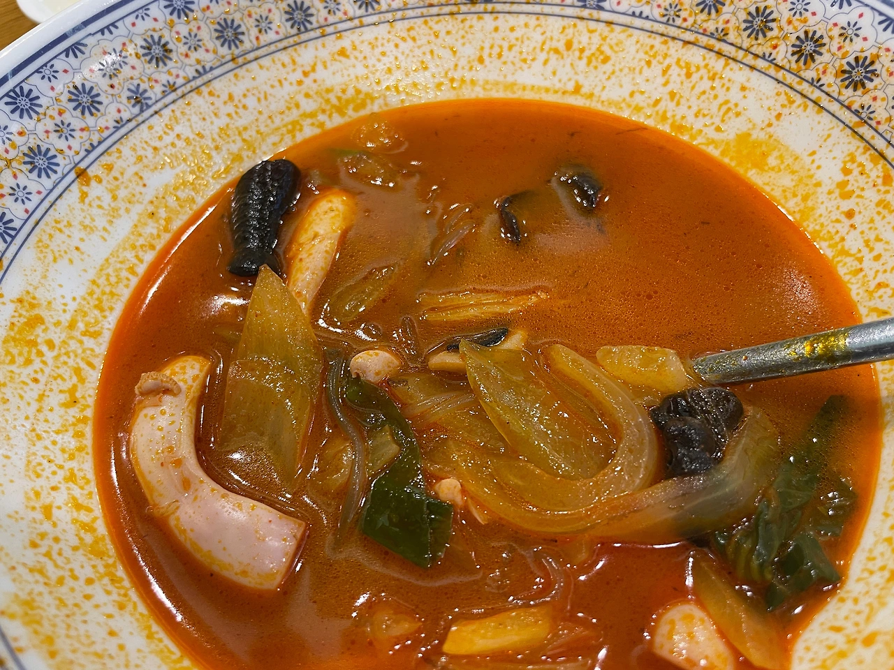 보통 너무 익어 흐물흐물해진 양파가 대부분인 집도 있는데, 여긴 다양한 건더기가 풍부하다.
