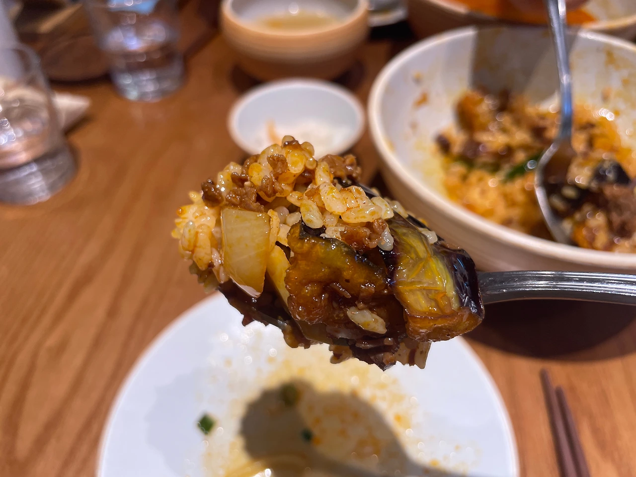 짭짤한 소스와 튀긴 가지가 잘 어우러졌다.