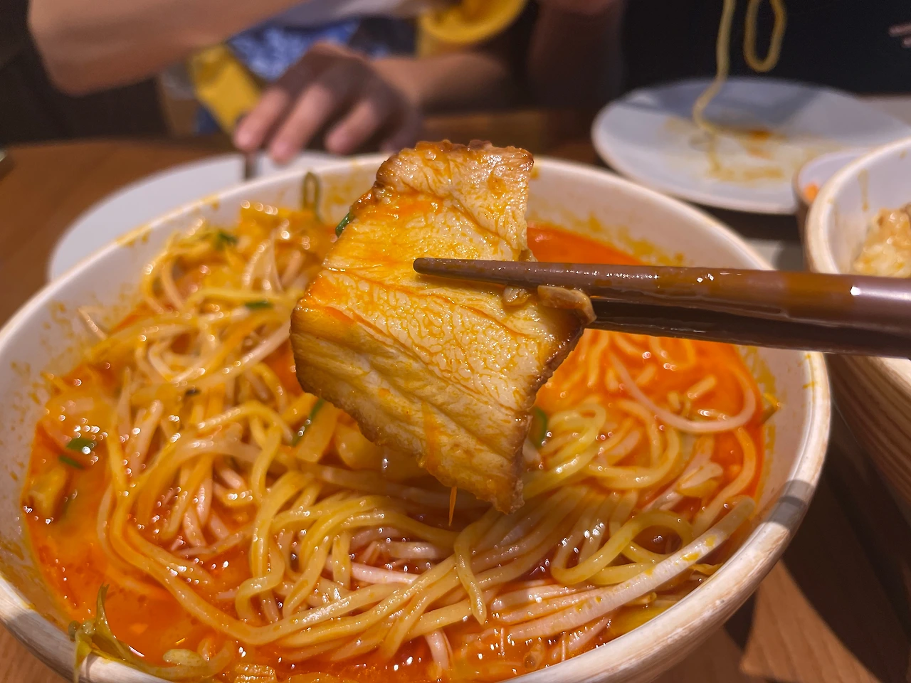 채소와 차슈가 들어간 매콤한 일본식 라멘이다.