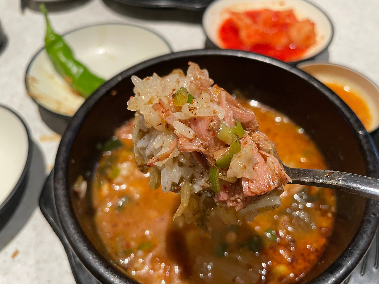 나는 덩어리가 큰 고기의 씹는 식감을 좋아하는데, 고기가 잘게 잘려 나오는 점도 아쉬웠다. 호석촌이 비슷한데, 나는 그래서 호석촌을 다시 방문하지 않는다. 아, 물론 건더기의 양은 정말 푸짐하다. 성인 남성이 충분히 배부르게 먹을 수 있다..