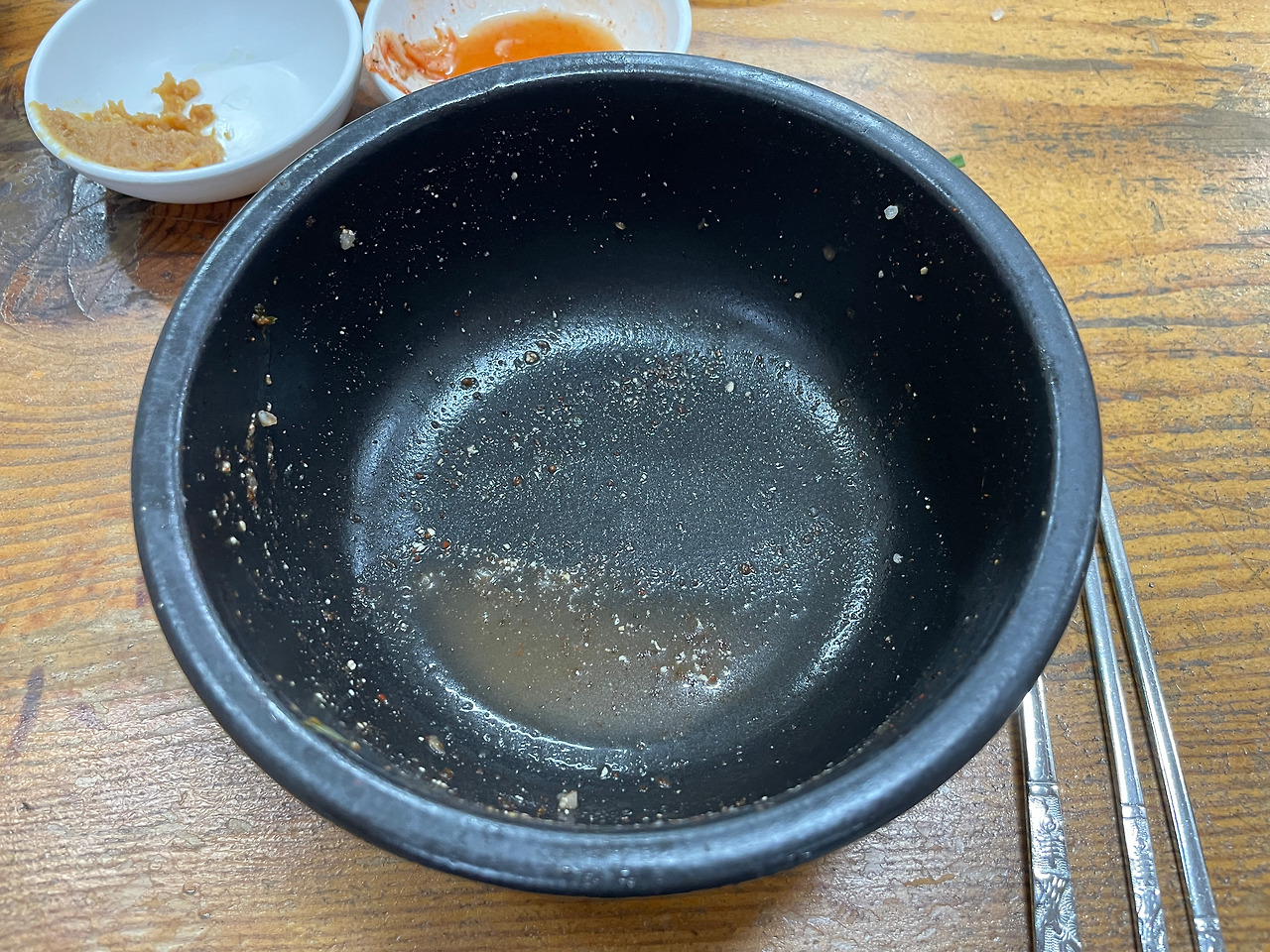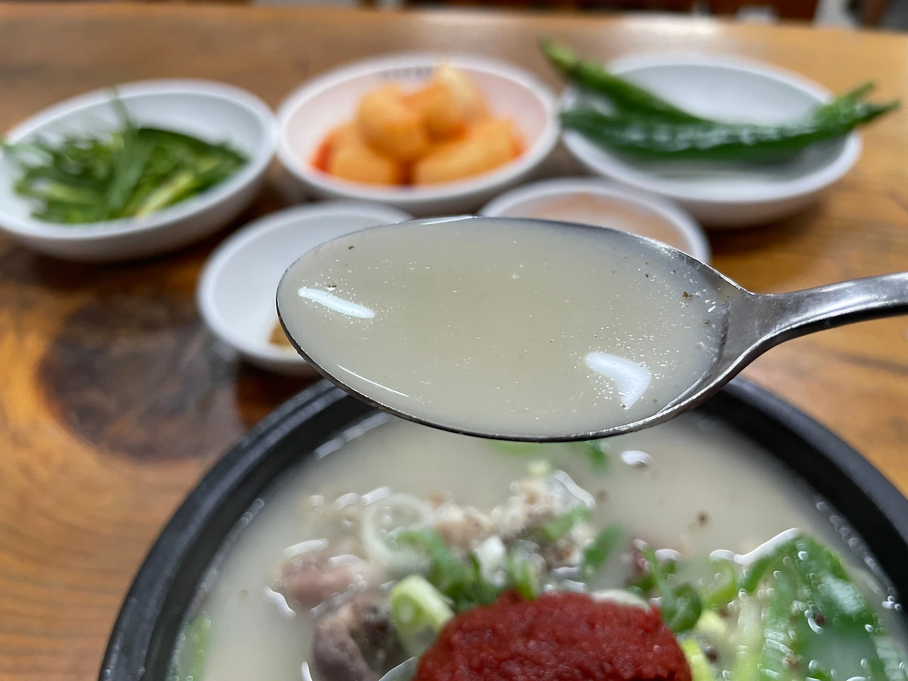 흰 밥이 따로 나올 때 밥을 말면, 국물에 밥알의 전분기가 녹아 걸쭉해지는데.