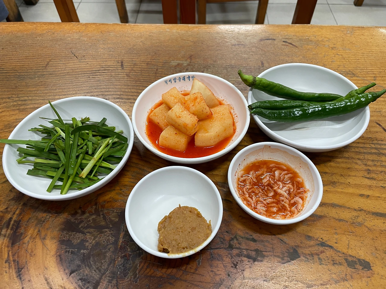 순댓국집의 밑반찬은 비슷한 가이드 라인이라도 있는지. 밑반찬 종류가 대동소이하다.