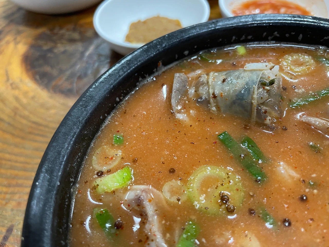 다대기를 풀지 않고 일단 한 숟가락 먹어보자.