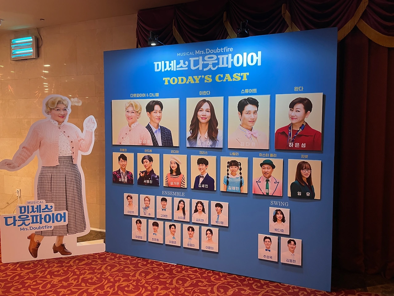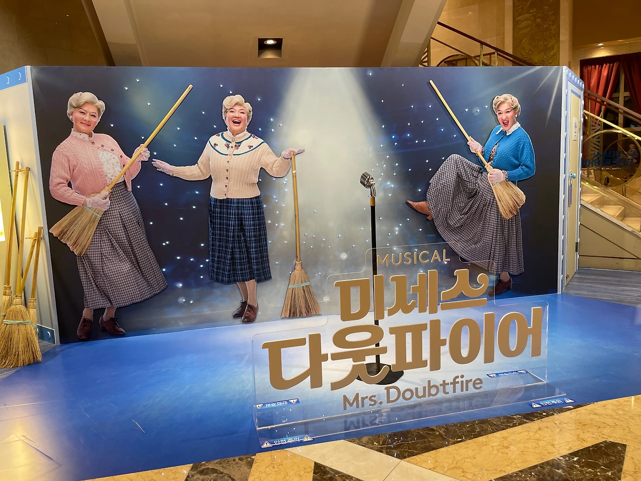 '미세스 다웃파이어'가 뮤지컬로? 로빈 윌리엄스가 주연한 원작 영화를 봤던 게 20년도 넘은 것 같다. 과연 이걸 제대로 무대에서 표현할 수 있을지 궁금했다. 어쩐지 며칠 전에, 내가 좋아하는 쿠팡플레이의 '직장인들'에서 정상훈 배우가 이런 모습으로 나오더라니. 뮤지컬 홍보였었나보다.