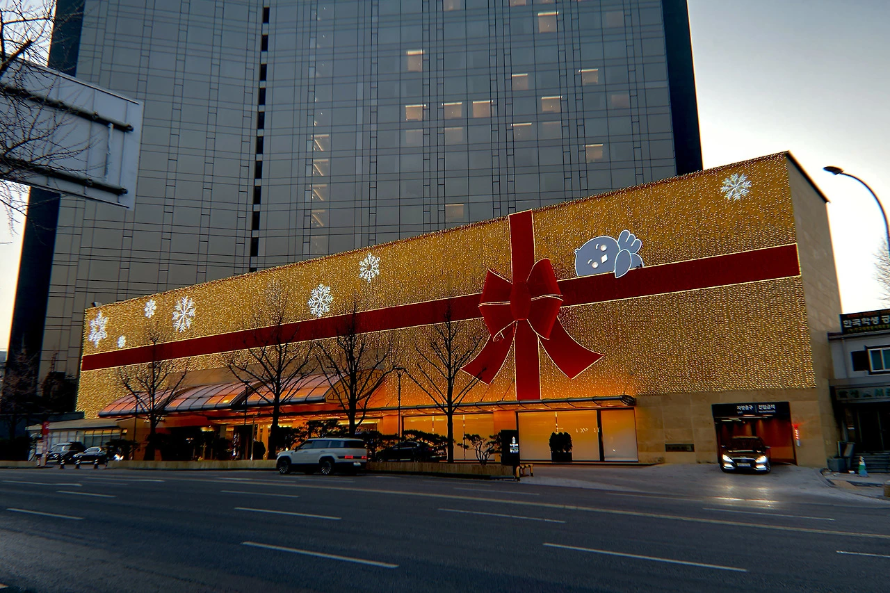 크리스마스 시즌이라 앰버서더 호텔은 앞쪽 건물 전체를 선물모양으로 만들어놨다. 연말 분위기를 물씬 풍긴다. 보는 것만으로도 설렌다. 그런 의미에서 길거리 캐롤 소리가 사라진 건 참 아쉽다. 저작권이 강화되어 그랬다던가, 아무튼. 캐롤 저작권이 있는 소유자들은 자영업자들이 돈을 내고서라도 길거리에 캐롤을 틀 것이라고 생각했나 보다. 그럴 리가 있나. 안타깝다. 이젠 아무도 캐롤을 듣지 않는다. 그런 세상이 되어버렸다.