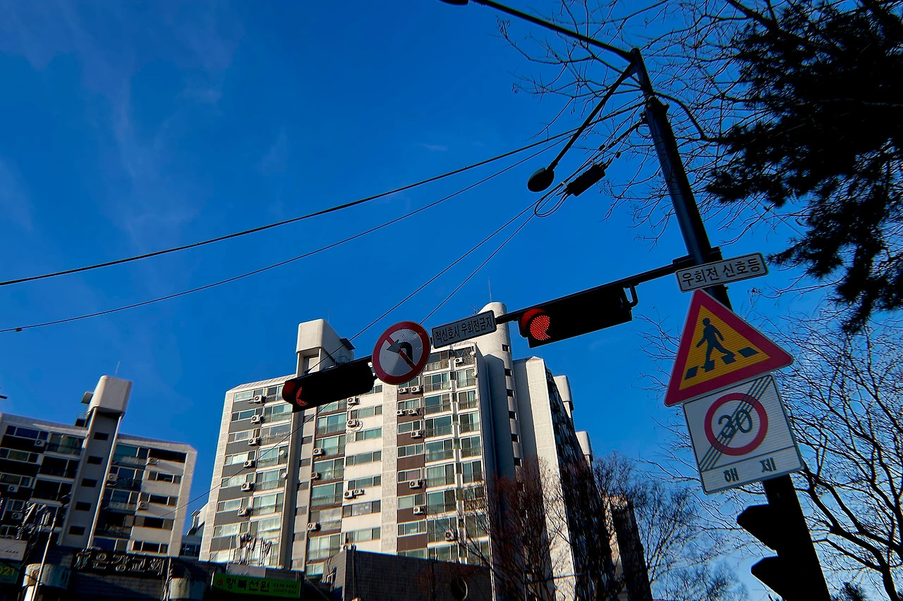 문득 고개를 들었다. 다행히 하늘은 맑고 쾌청하다. 걷기에 이보다 더 완벽한 날씨는 없지. 차가운 공기가 오히려 상쾌하다.