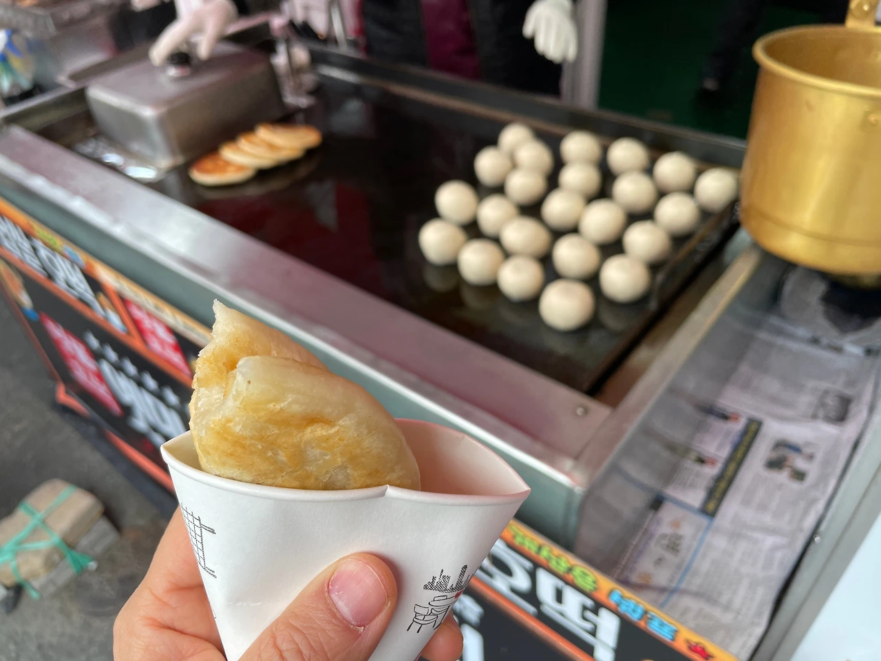 들어간 고명은 구운 인절미 맛. 인절미 튀김 같다. 아, 추웠는데 뜨근해서 좋다. 겨울 여행의 묘미다.