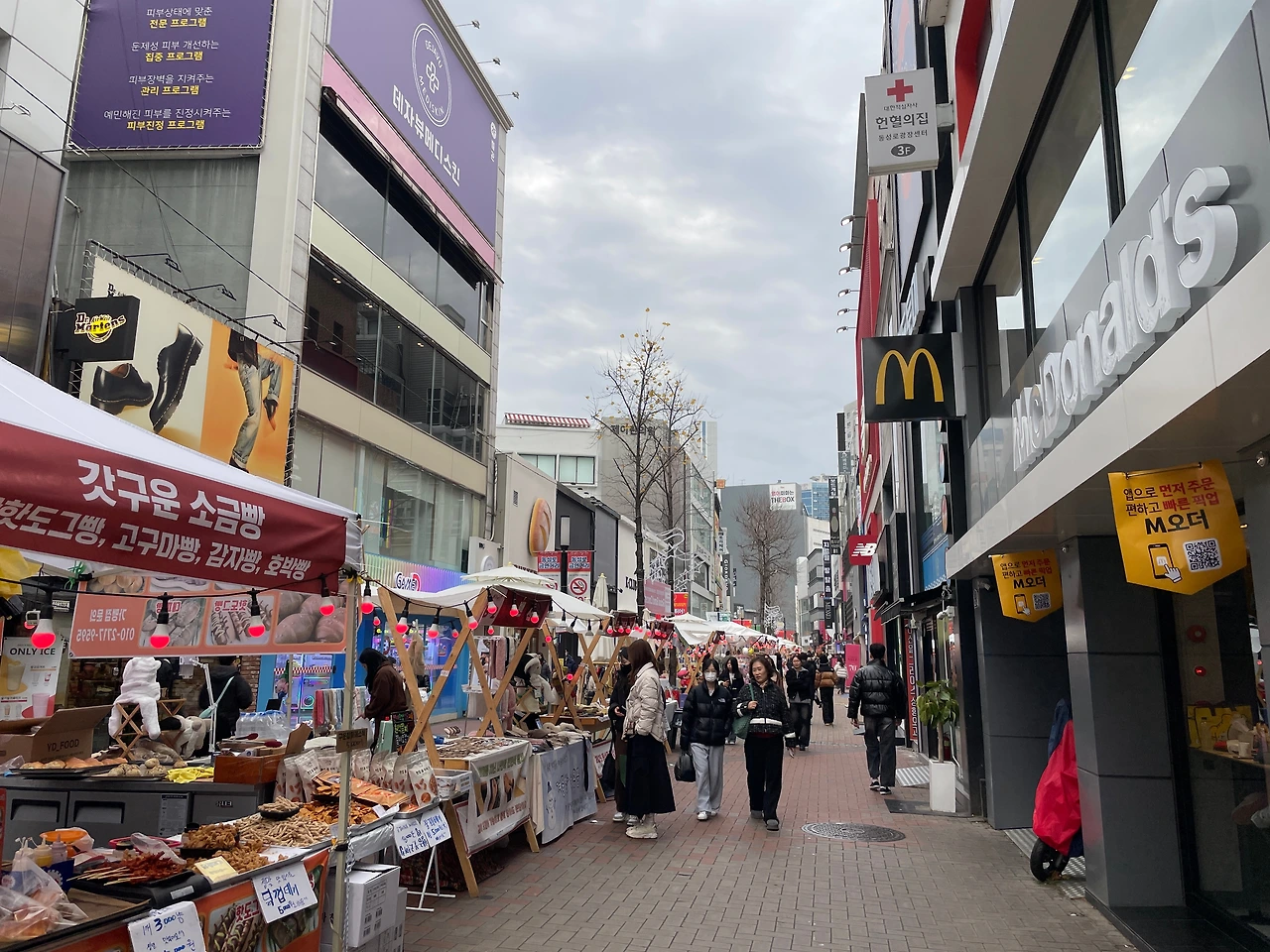 롯데백화점, 현대백화점이 모두 이 근처다. 대구역도 바로 앞이고. 사람들이 왜 '대구 하면 동성로'라고 말하는지 잘 알겠다. 핸드폰케이스 가게랑 가차샵이 많더라.