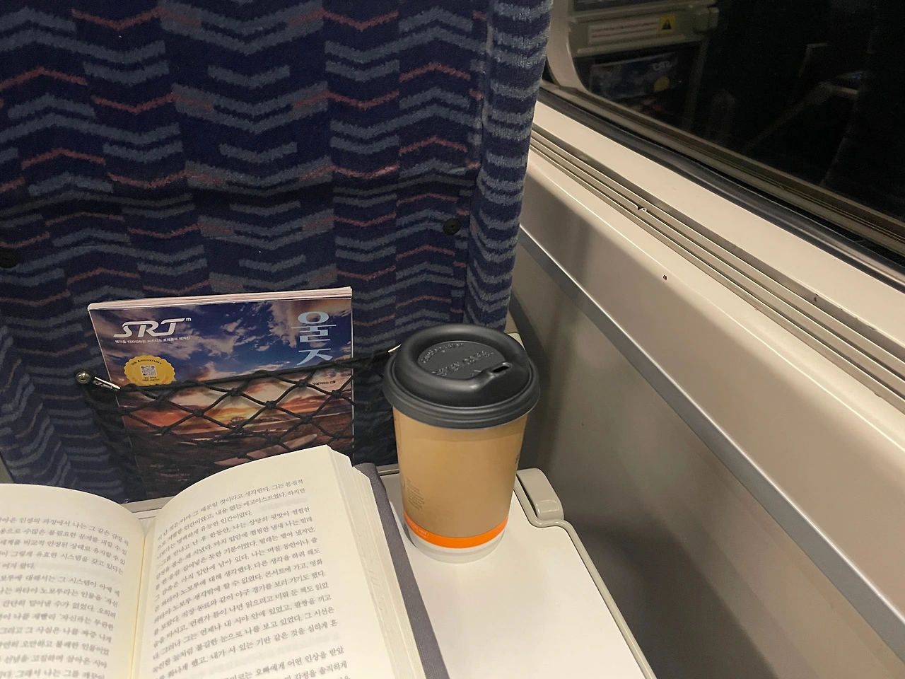 커피 한 잔 사서 탔다. 가방에 책 한 권만 넣어서 나왔다. 덜컹거리는 진동을 느끼며 읽는 글자야말로 기차 여행의 백미다. 차창 밖 풍경 한번, 책 한 줄, 그리고 커피 한 모금. 완벽한 삼박자.