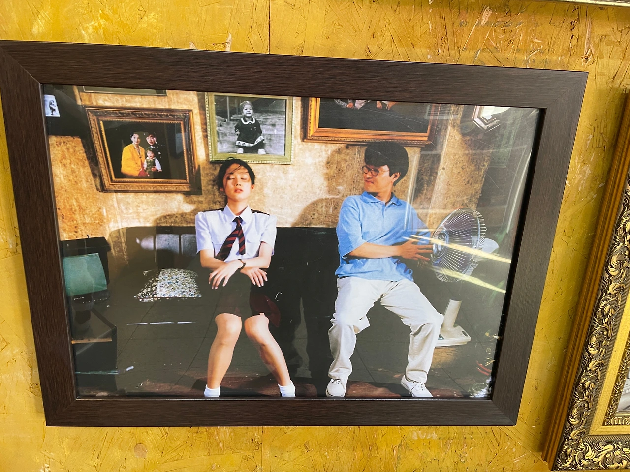 위 소파 자리는, 바로 이 유명한 사진 속 장면을 촬영한 자리다. 한석규가 연기한 정원이 심은하(다림) 쪽으로 선풍기 머리를 살짝 돌려주던 그 순간이다. 말 한마디 없이도 사랑을 표현했던, 극도로 자제한 섬세한 연출이었다고 생각한다.