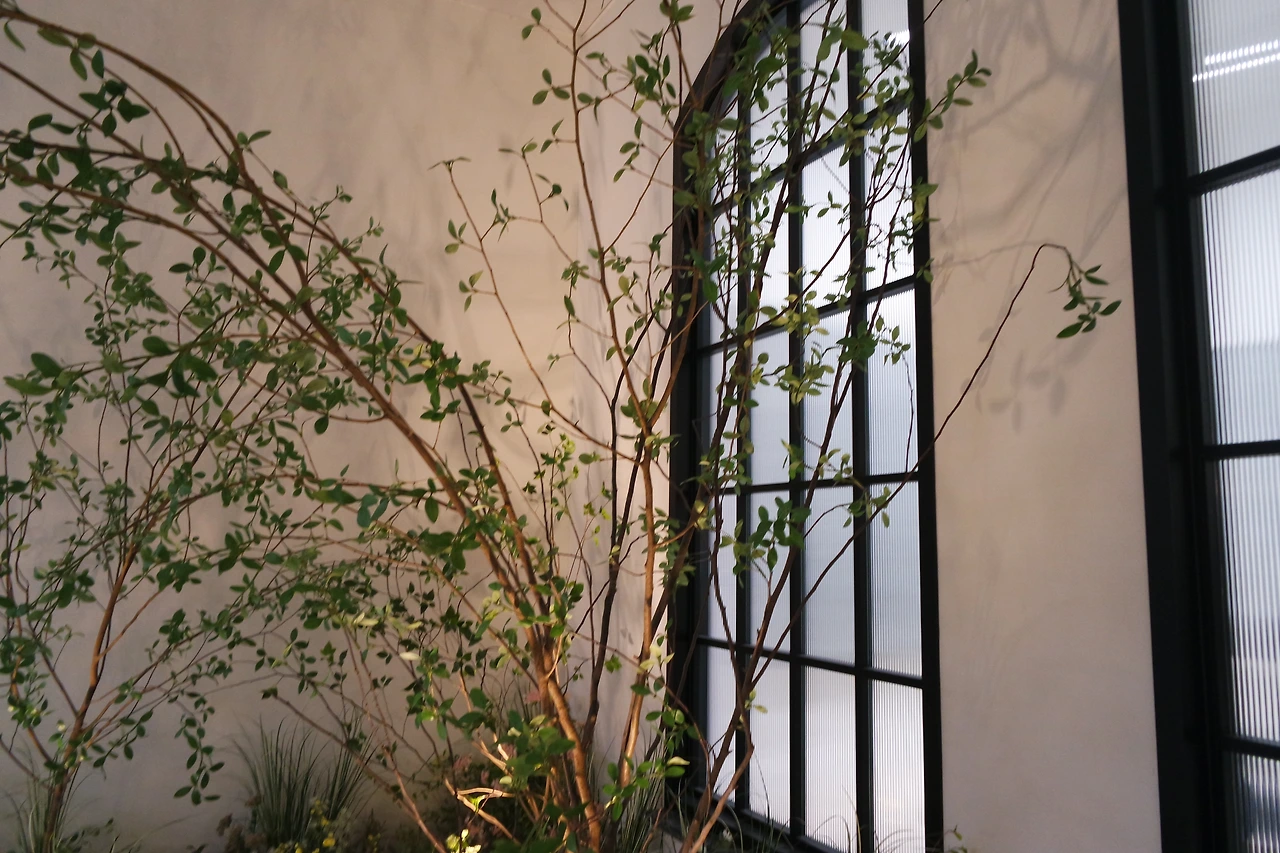 예술을 관람하는 기쁨은 '이질적인 것들의 조화'를 발견할 때 극대화된다. 거친 질감의 캔버스 옆에 매끈한 미드센추리 모던 가구가 놓여있을 때, 그 어색한 긴장감이 주는 쾌락이 있잖은가. 이번 전시에서도 그런 지점들이 눈에 띈다. 아래 사진처럼, 누가 봐도 야외에 심어져 있어야 할 나무가 실내에 높다랗게 서있는 모습 같은 것 말이다. 그 이외에도 아티스트들의 손끝에서 탄생한 각종 오브제들은 일상적인 물건의 기능을 넘어 하나의 서사가 된다.