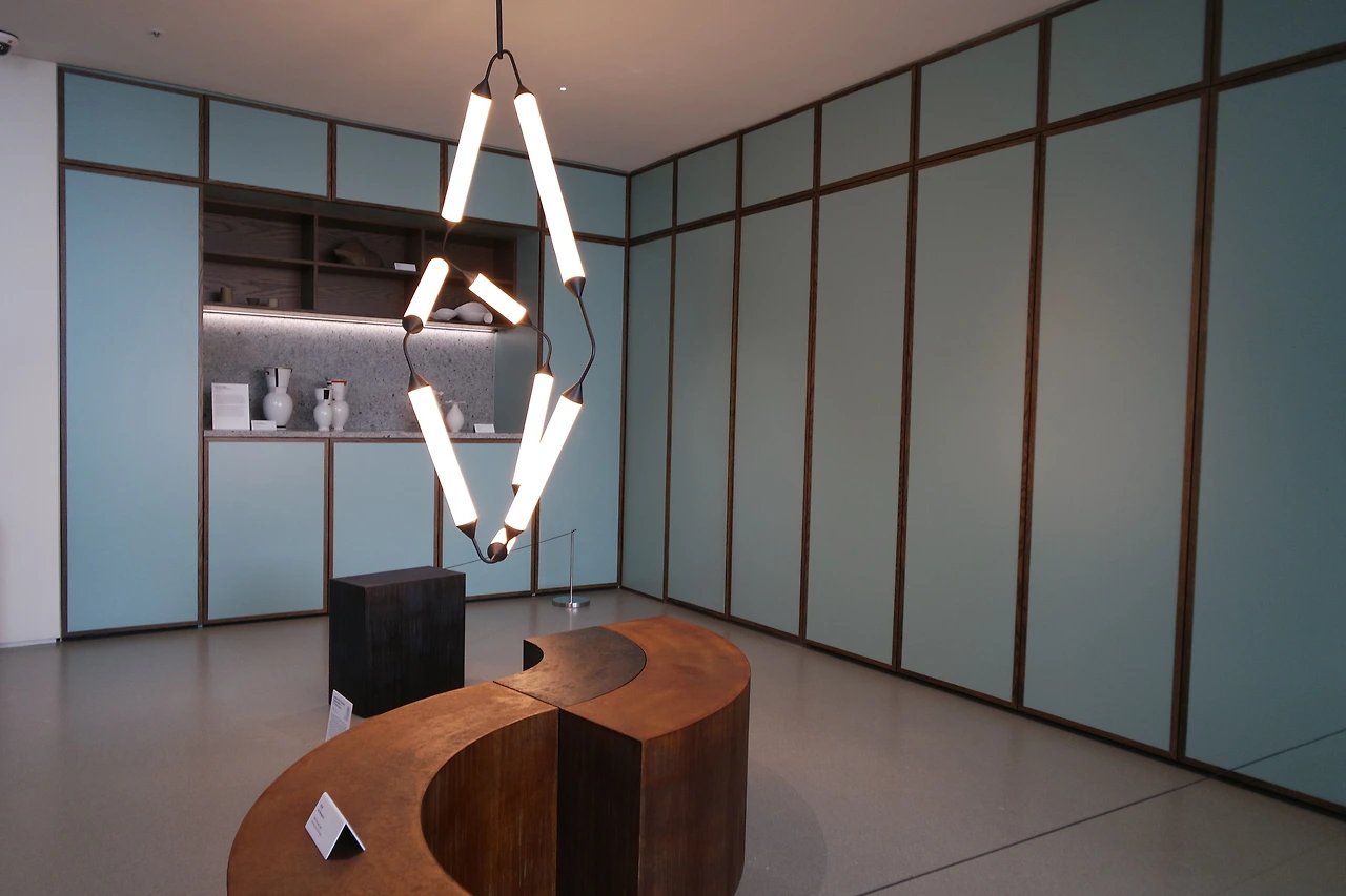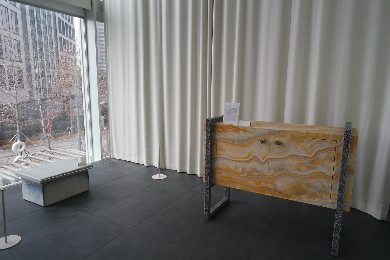이번 전시는 거실, 침실, 주방 등 집의 요소를 예술가의 시선으로 재해석한다. 단순히 가구를 배치한 쇼룸이 아니다. 얼핏 모델하우스 같을 순 있겠다. 하지만 조금 더 신중하게 살펴보면 가구와 조명, 그리고 그 공간을 채우는 회화와 조각들이 하나의 유기체처럼 연결되어 있다.