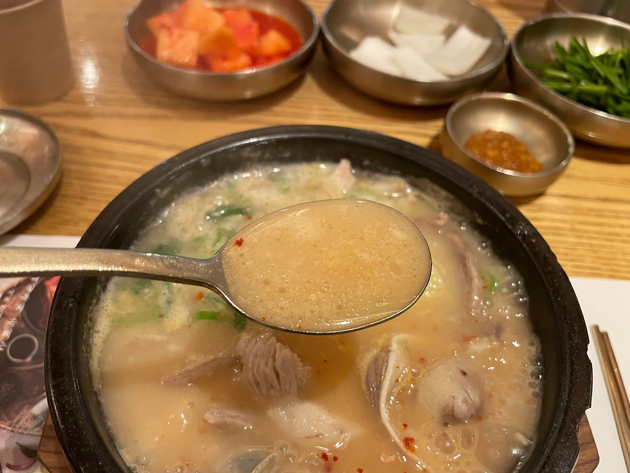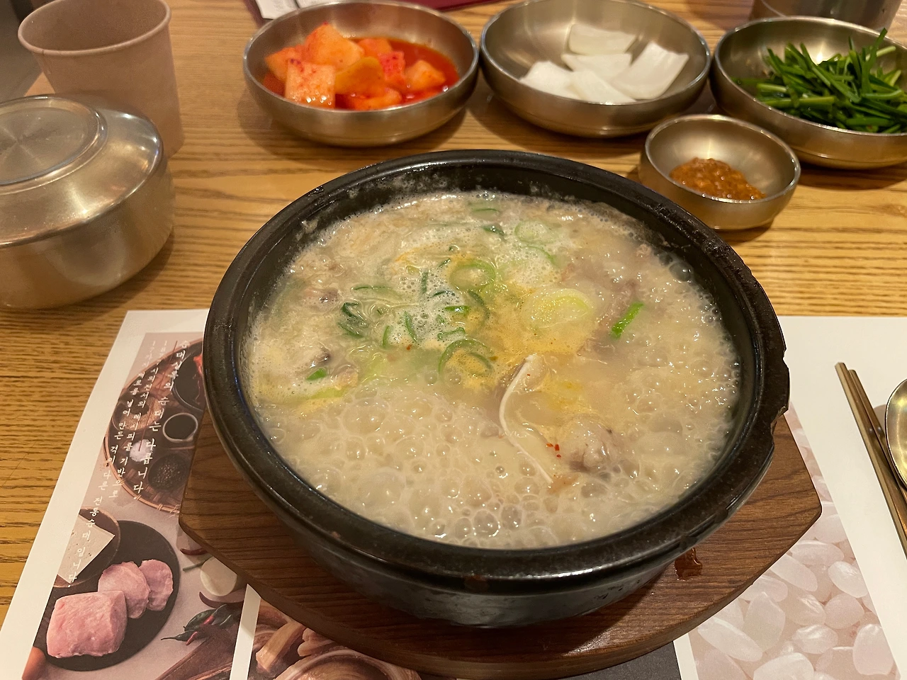 입장했다. 공간이 꽤 넓고 쾌적하다. 다닥다닥 붙어 앉아 옆 사람의 대화를 반찬 삼아 먹는 시장 국밥집과는 결이 조금 다르다. 자본의 향기가 물씬 느껴지는 질서 정연함.