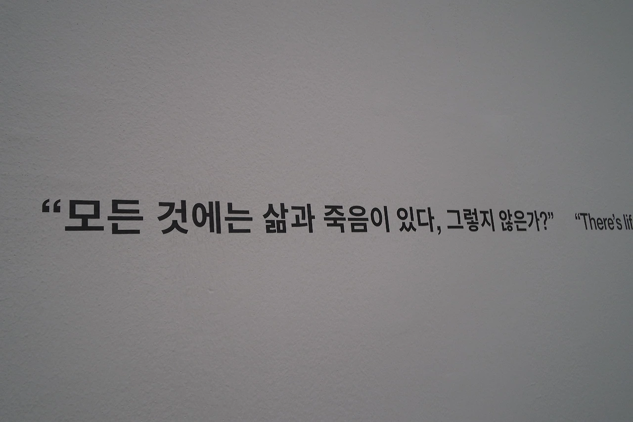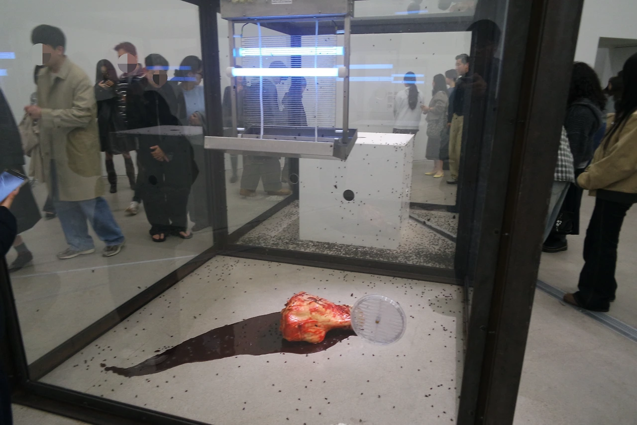<천 년>이라는 작품 앞에서 발길이 좀 무거워졌다. 뭔가 싶었다. 유리 상자 속에서 썩어가는 소 머리와 그 위를 맴도는 파리 떼, 그리고 살충기가 놓여있다. 파리는 생존을 위해 피 냄새를 쫓지만, 그 끝에는 살충기의 허망한 죽음만이 기다리고 있다. 탄생과 섭식, 그리고 소멸로 이어지는 잔인한 순환의 고리. 이것이 우리가 외면하고 싶은 생의 적나라한 민낯이다. 구역질이 나는 작품 앞에서 나는 무언가 조금 느낄 수 있었다.