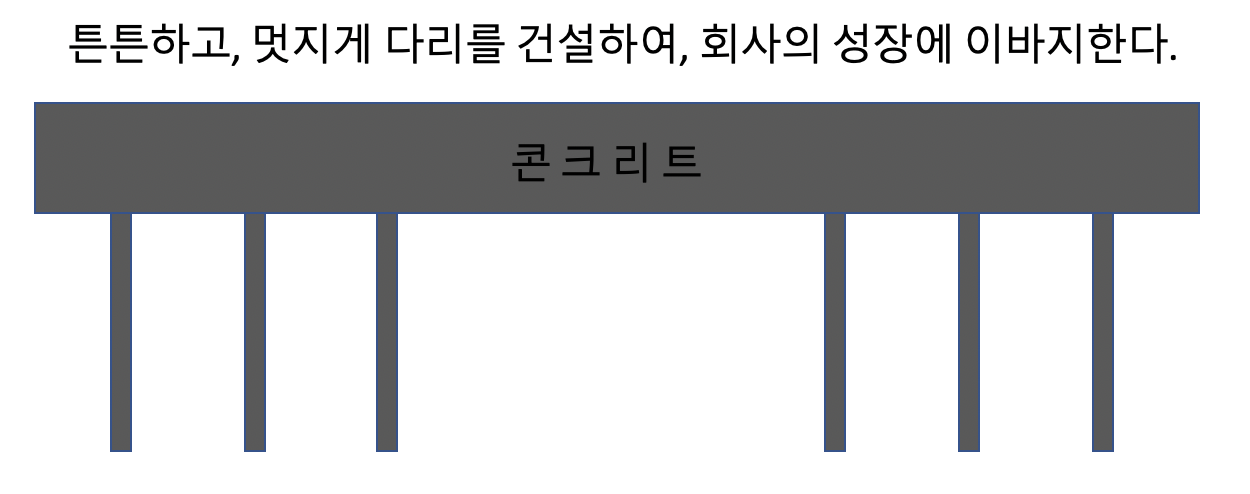 팀장은 직접 파워포인트를 연다. 그리고 갑자기 다리 그림을 그리기 시작한다.