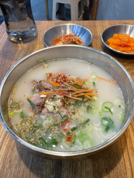 시장 안에 있는 작은 국수집에서, '고기 국수' 한 그릇을 먹었다. 진한 고기국물이 마치 설렁탕에 국수사리를 넣어서 먹는 느낌이다. 만족스럽다.