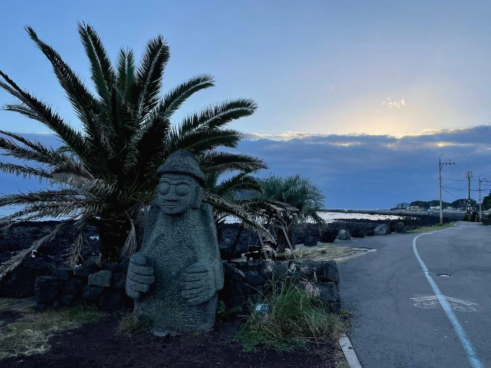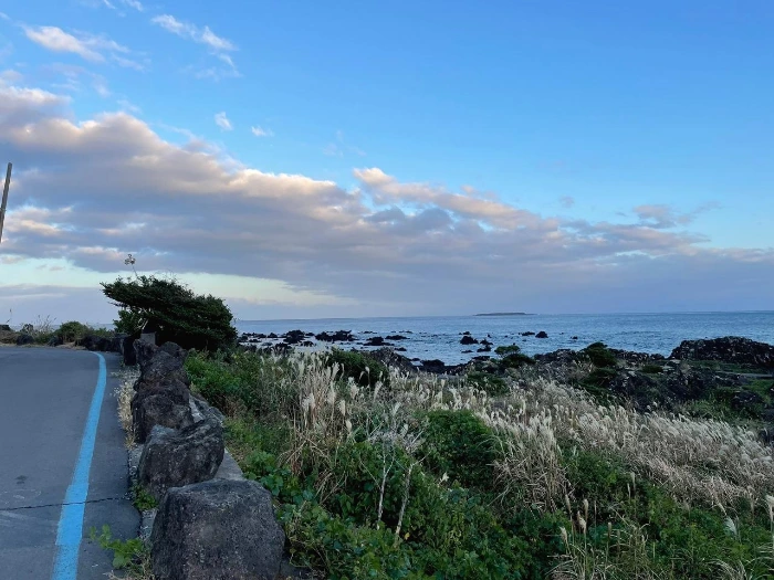 6코스 시작점(나는 6코스 종착지에서 시작점으로 코스를 거꾸로 걸었다.)에 도착하자마자 해가 지더니 주변이 깜깜해졌다. 숙소로 가야하는데, 휴대폰 배터리는 5% 이하고, 주변에는 뭐가 있는지 모르겠다. 칠흑같은 어둠 뿐, 공포영화에 나올 법한 상황이다. 지난 경험에 비춰봤을 때, 제주 버스는 일찍 끊긴다. 일단 버스정류장까지 다시 걸어가서 기다리기로 했다.