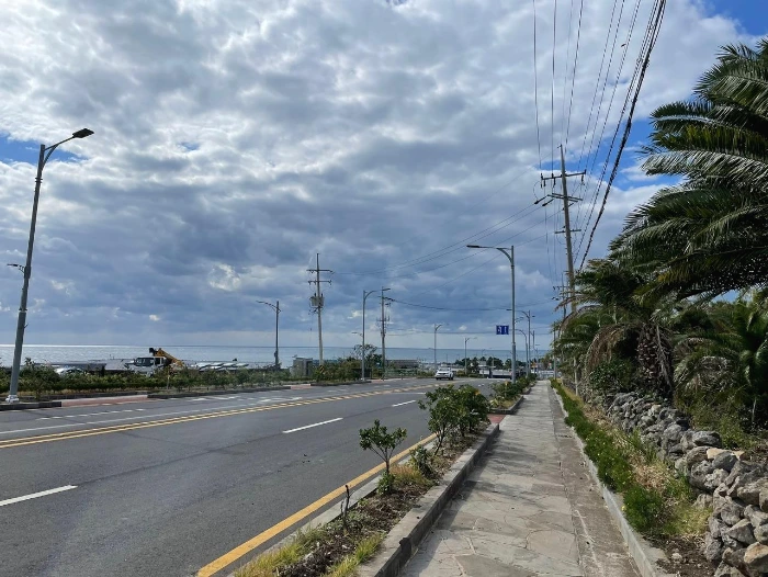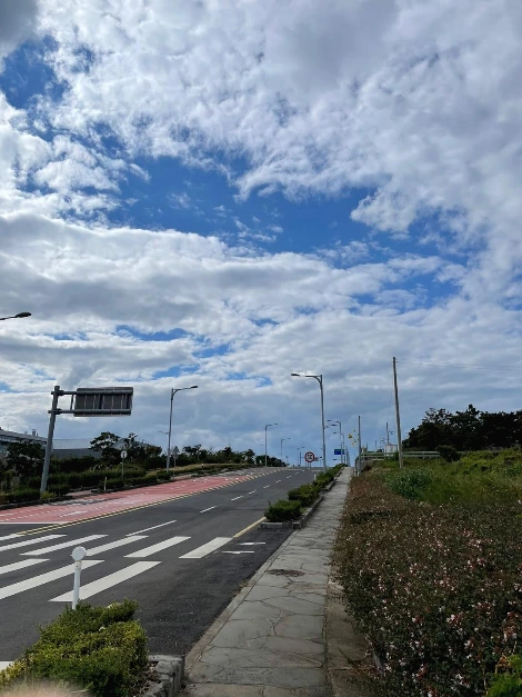 강정 마을에서 아래 사진을 찍은건, 어디서 봤던 분위기였기 때문이다. 하와이였다. 하와이에 가서도 많이 걸었는데, 그 때 느꼈던 길과 하늘, 바다의 분위기가 매우 비슷했던 기억이다.