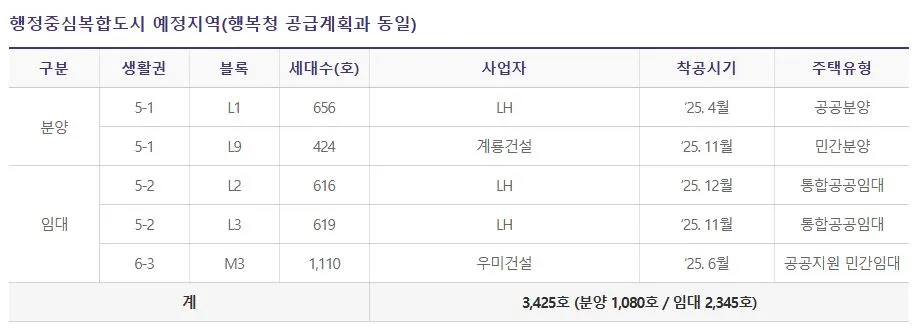 더 이상 아파트 지을 곳이 없을만큼 빼곡히 아파트를 지은 1~2생활권이나, 2025년 중 민간분양이 예정된 5생활권이나, 모두 세종시 전체 중 아주 일부인 행정중심복합도시 안에서의 얘기일 뿐입니다.