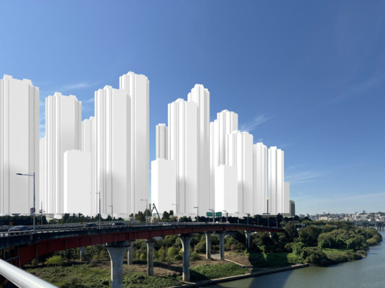 ▲ 압구정 3구역 재건축 이후 예상도. 최고 높이가 250m에 달하는 압도적인 아파트벽이 세워진다. 새로운 대장 아파트가 탄생할 수 있다. (출처: 중앙일보)