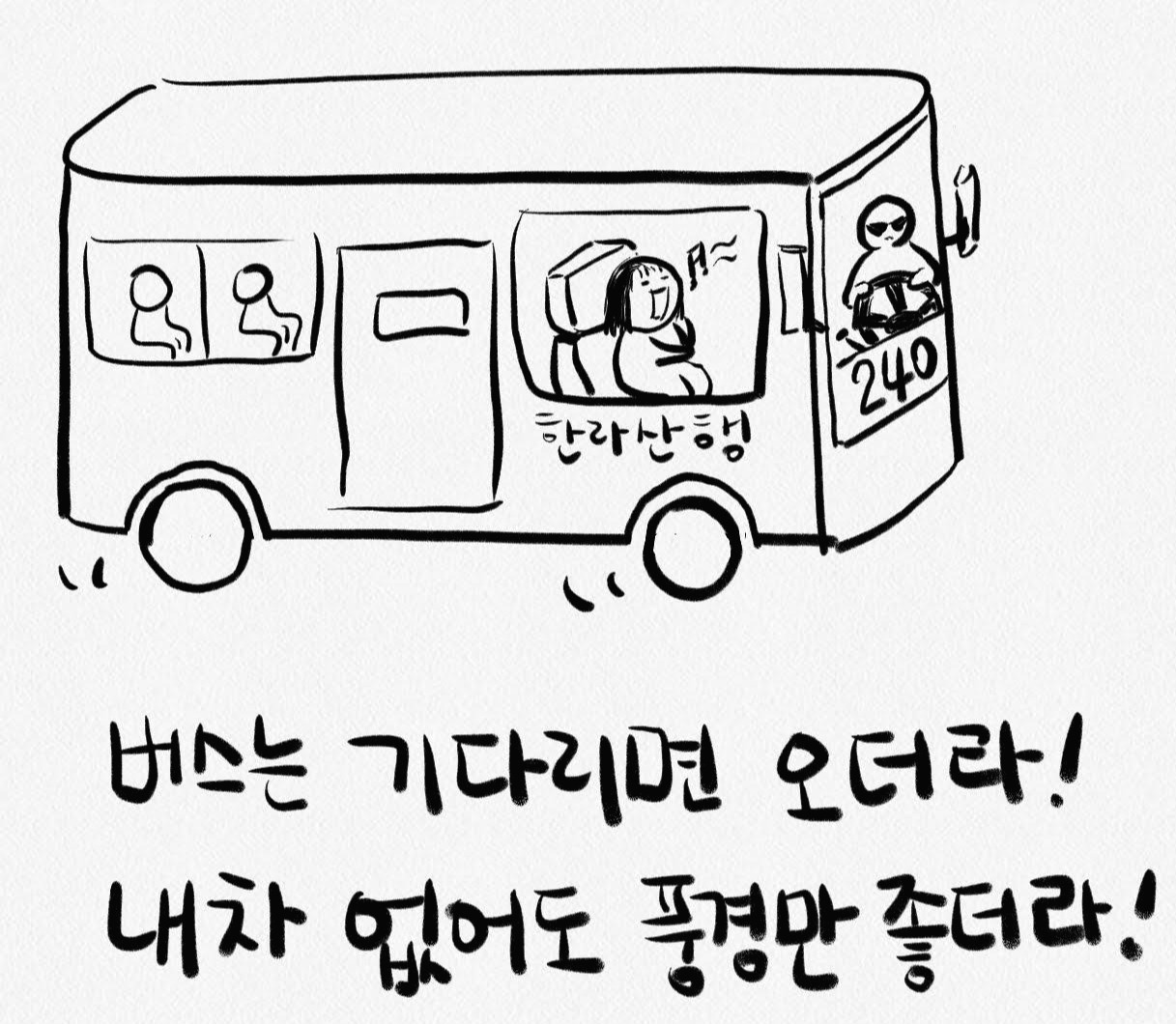 차가 없으면 어때요? 이렇게 편하게 다닐 수 있는 제주 버스가 있는데요. 한 시간 넘게 버스를 타도 지루할 일이 없어요. 졸다 보면 기사님이 깨워도 준답니다. 대신, 노약자나 임산부가 타면 자리 양보는 필수예요!